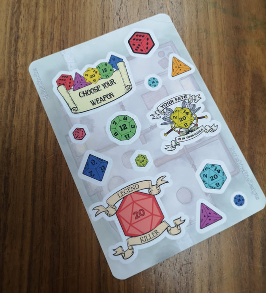 Dungeons and Dragons Themed Matt Vinyl Sticker Sheet - 3 Large DnD themed Stickers and 10 Dice StickersRegular price £4.00Regular priceUnit price per-