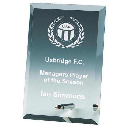Jade Glass Rectangle Plaque With Metal Stand (4mm Thick) - Personalisable Engraving