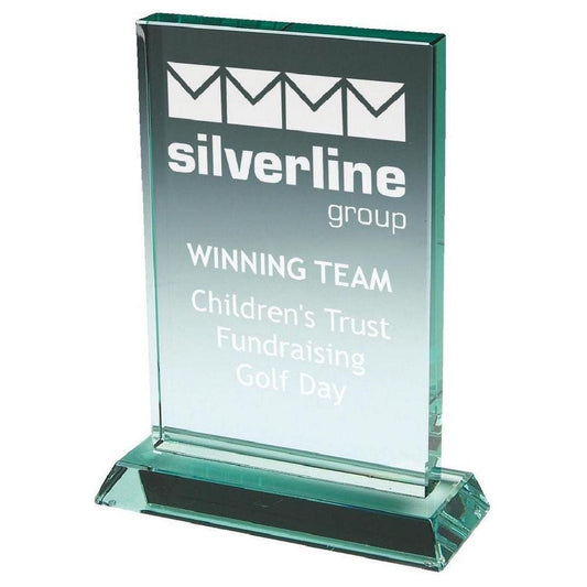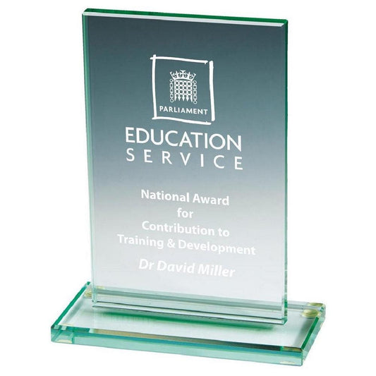 Rectangle Jade Glass Award with Pin Stand - Personalisable Engraving - Available in 2 Sizes