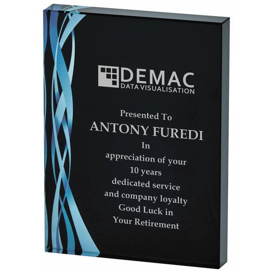 Clear Glass Plaque On Black Base (30mm Thick) - Personalisable Engraving