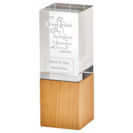 Glass Square Column Award with Wooden Base - Available in 2 Sizes