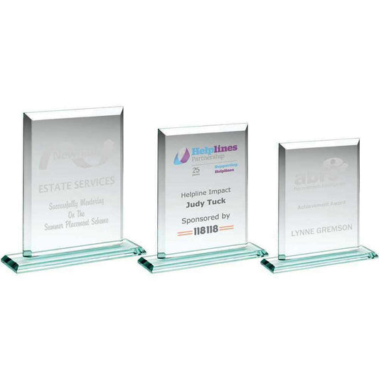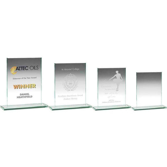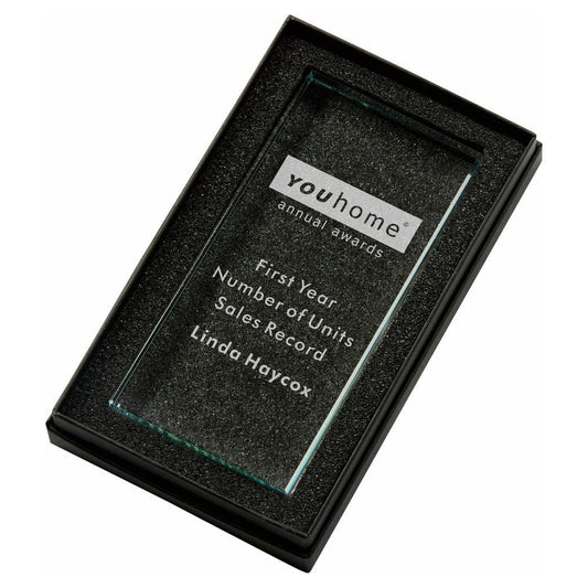 Premium Jade Glass Rectangular Stand - with Presentation Case - Personalisable Engraving - Available in 3 Sizes
