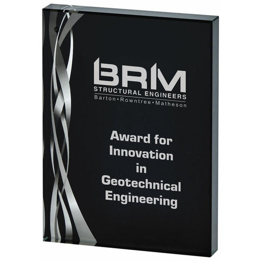 Rectangular Silver Glass Award - Black Background - Personalisable Engraving - Available in 2 Sizes