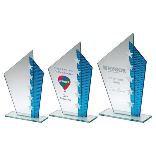 Clear/Blue Glass Victory Plaque With Blue Globe - Personalisable Engraving