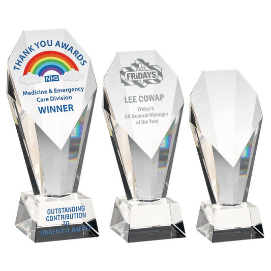 Clear Glass Hexagonal Column On Black Base - Personalisable Engraving