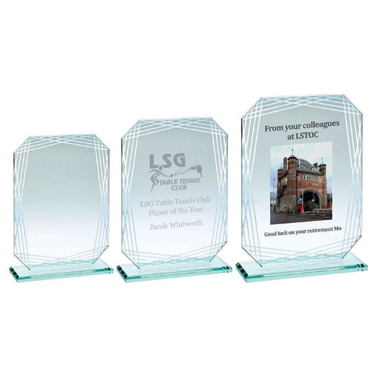 Jade Glass Angled Plaque With Gold/Silver Glitter Detail (5mm Thick) - Personalisable Engraving