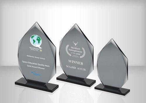 Clear Glass Plaque With Black Neck And Round Base - Personalisable Engraving