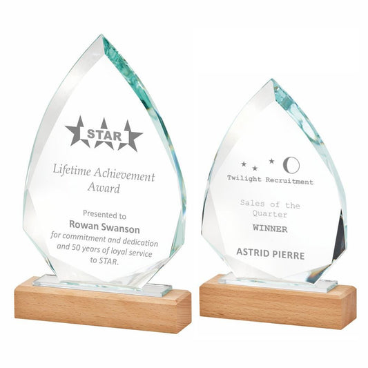 Arrowhead Glass Stand with Wooden Base - Available in 2 Sizes