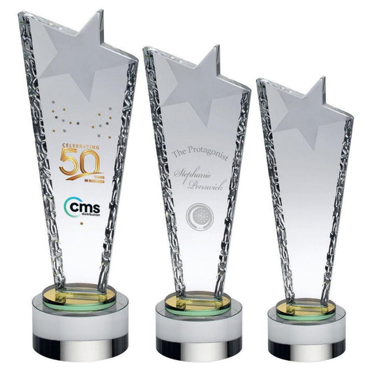 Clear Frosted Star Column With Yellow Collar (15mm Thick) - Personalisable Engraving