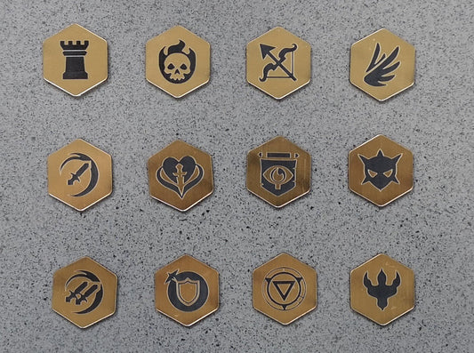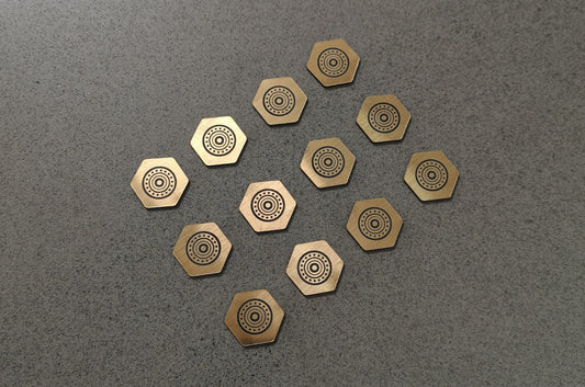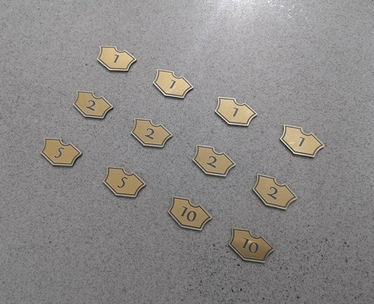 Magic the Gathering Dungeon Tokens - 4 Dungeons and 3 Treasure Counters - Gold and Silver 2 ply Acrylic