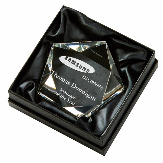 Star-Shaped Crystal Stand (In Presentation Case) - Personalisable Engraving - Available in 3 Sizes