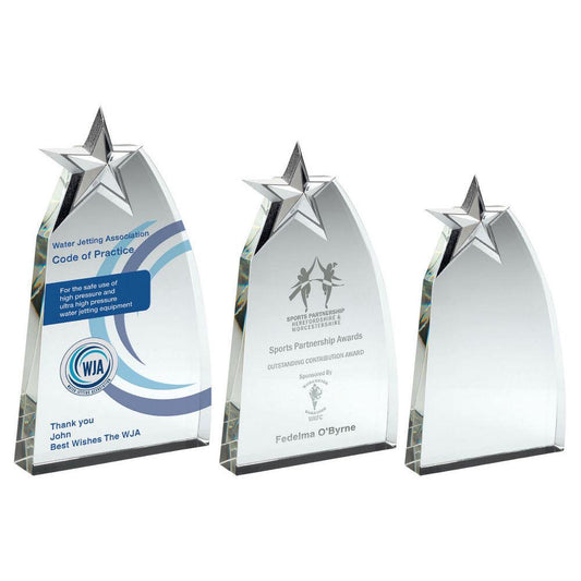 Clear Glass Wedge With Detailed Metal Star - Personalisable Engraving