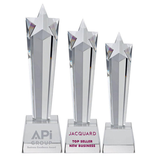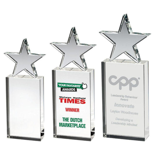 Clear Glass Star Column On Base - Personalisable Engraving