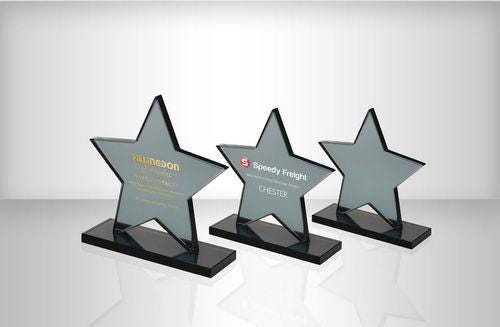 Smoked Black Glass Star Plaque (10mm Thick) - Personalisable Engraving