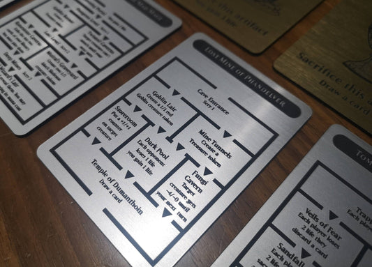 Magic the Gathering Dungeon Tokens - 4 Dungeons and 3 Treasure Counters - Gold and Silver 2 ply Acrylic