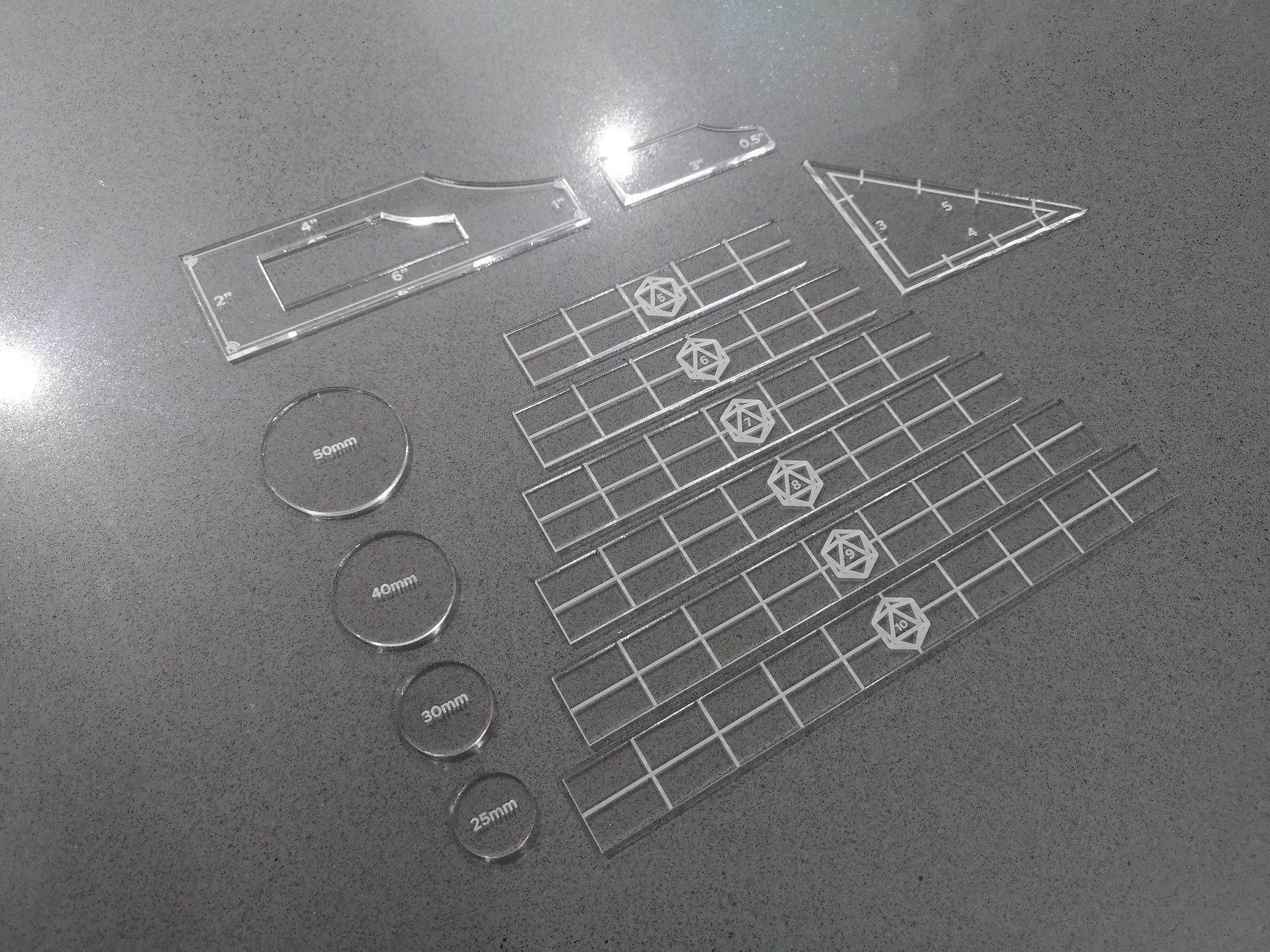 13 Piece Table Top Measuring Set - Rulers, Tools, Widgets & Gauges - Tabletop Wargaming Set