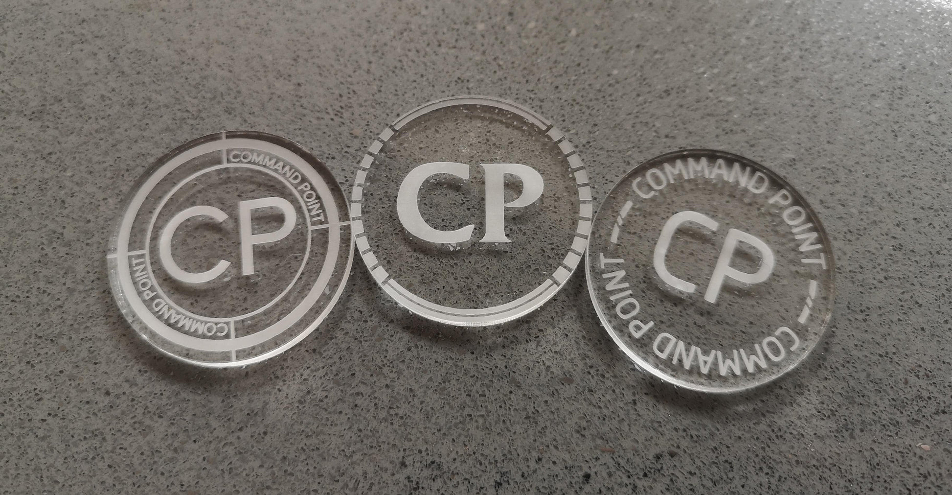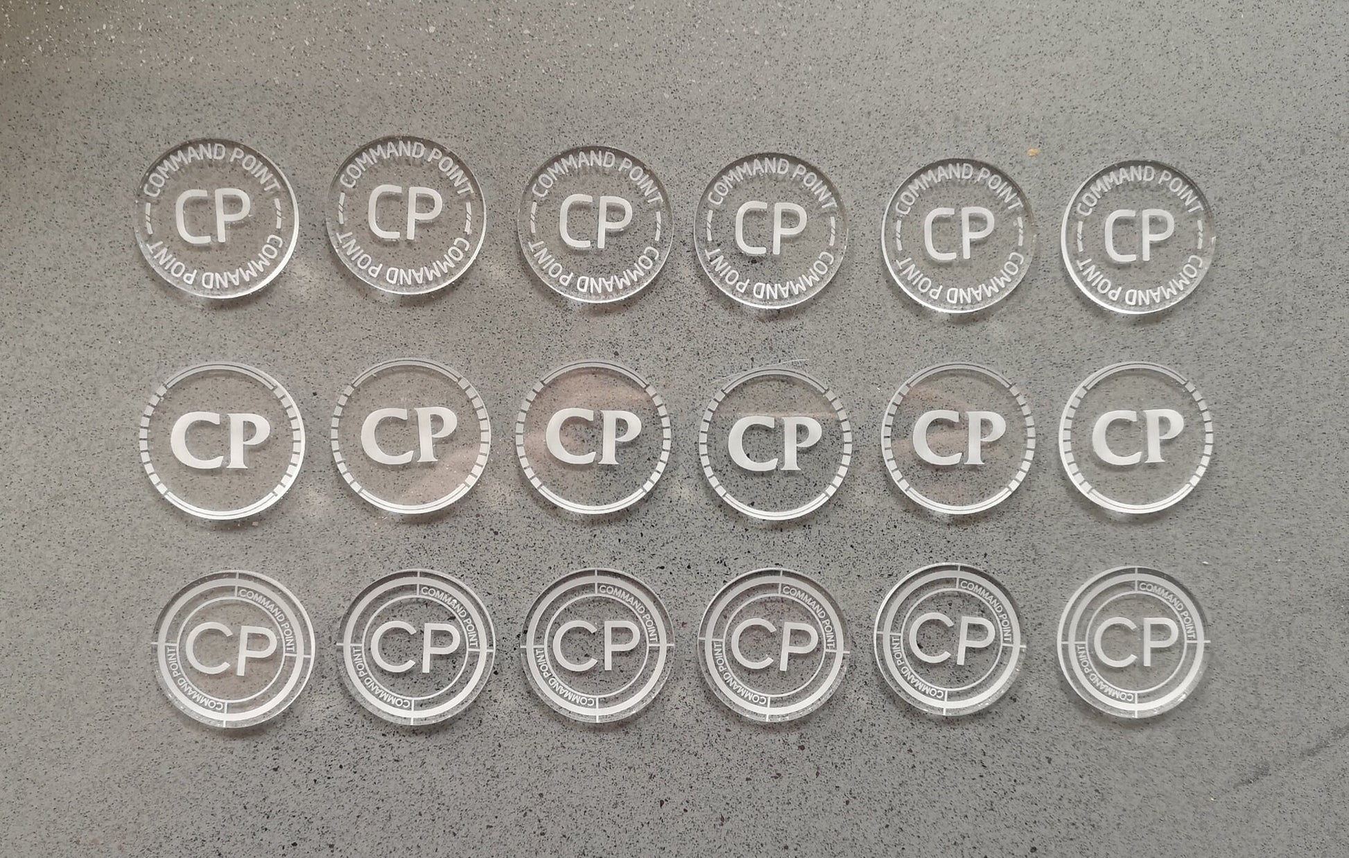 35mm Command Point Tokens - Set of 6, ideal for use with Warhammer/Age of Sigmar - Laser Engraved Acrylic Counters