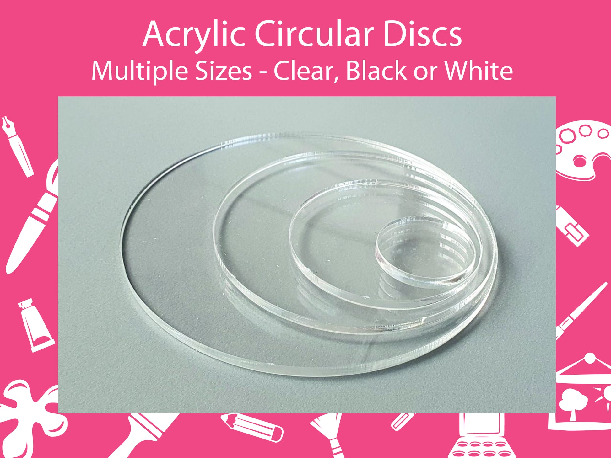 Acrylic Circular Discs/Craft Blanks (Packs of 10) - Clear, Black, White