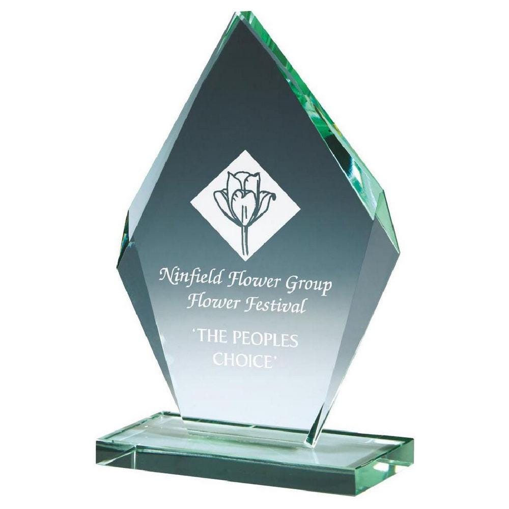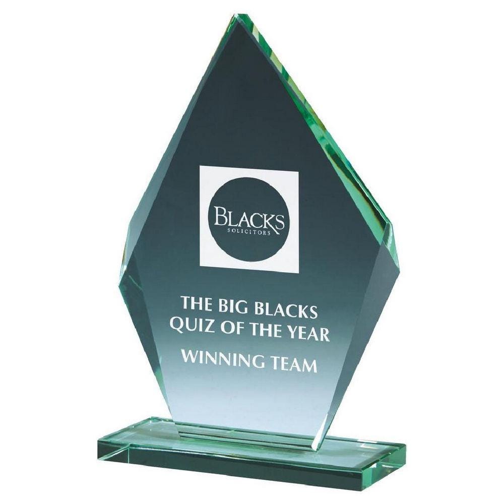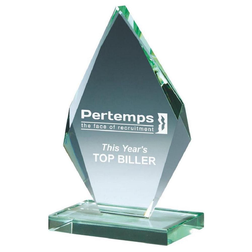 Beveled Jade Glass Diamond Stand Award - Personalisable Engraving - Available in 4 Sizes