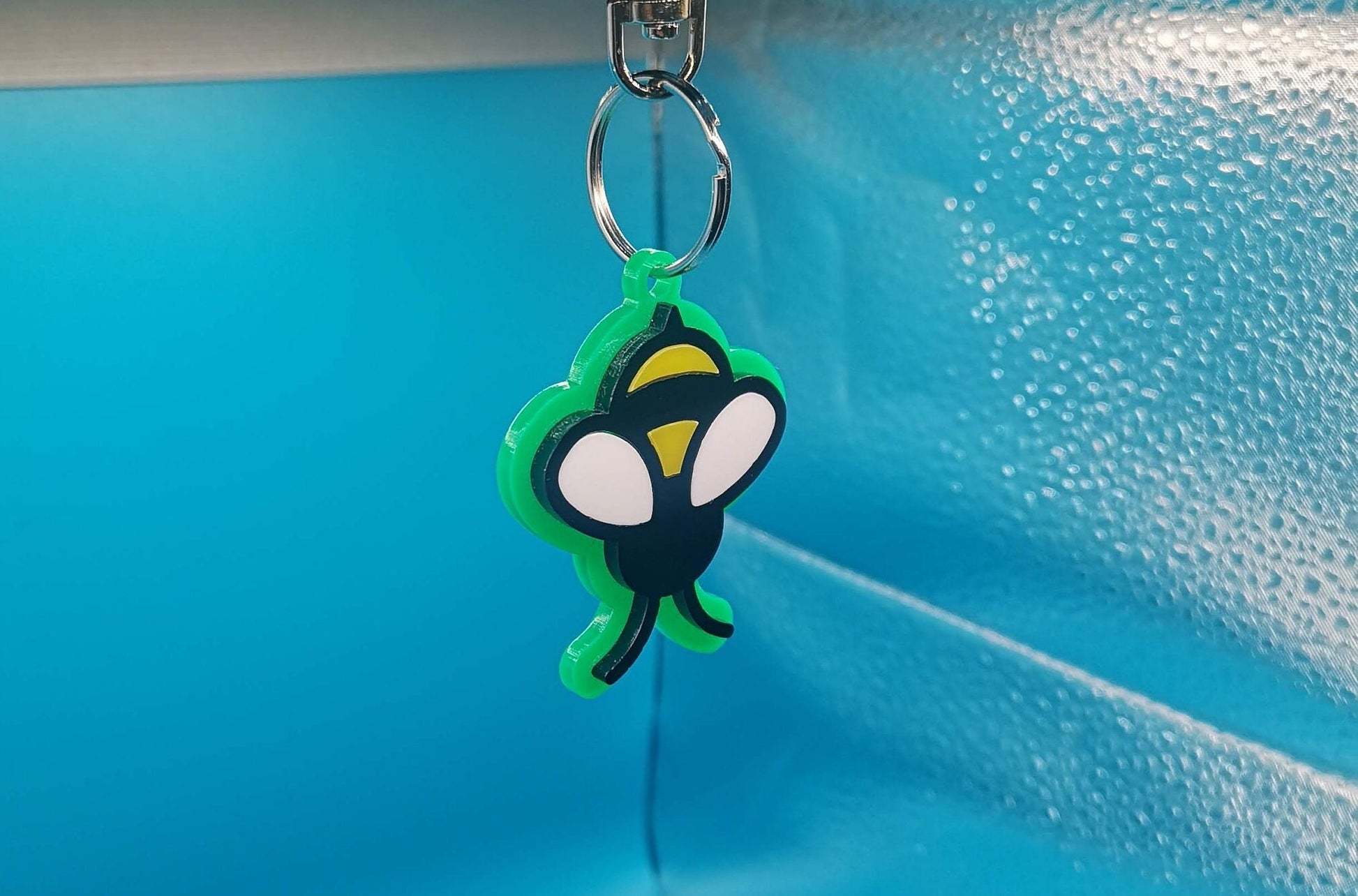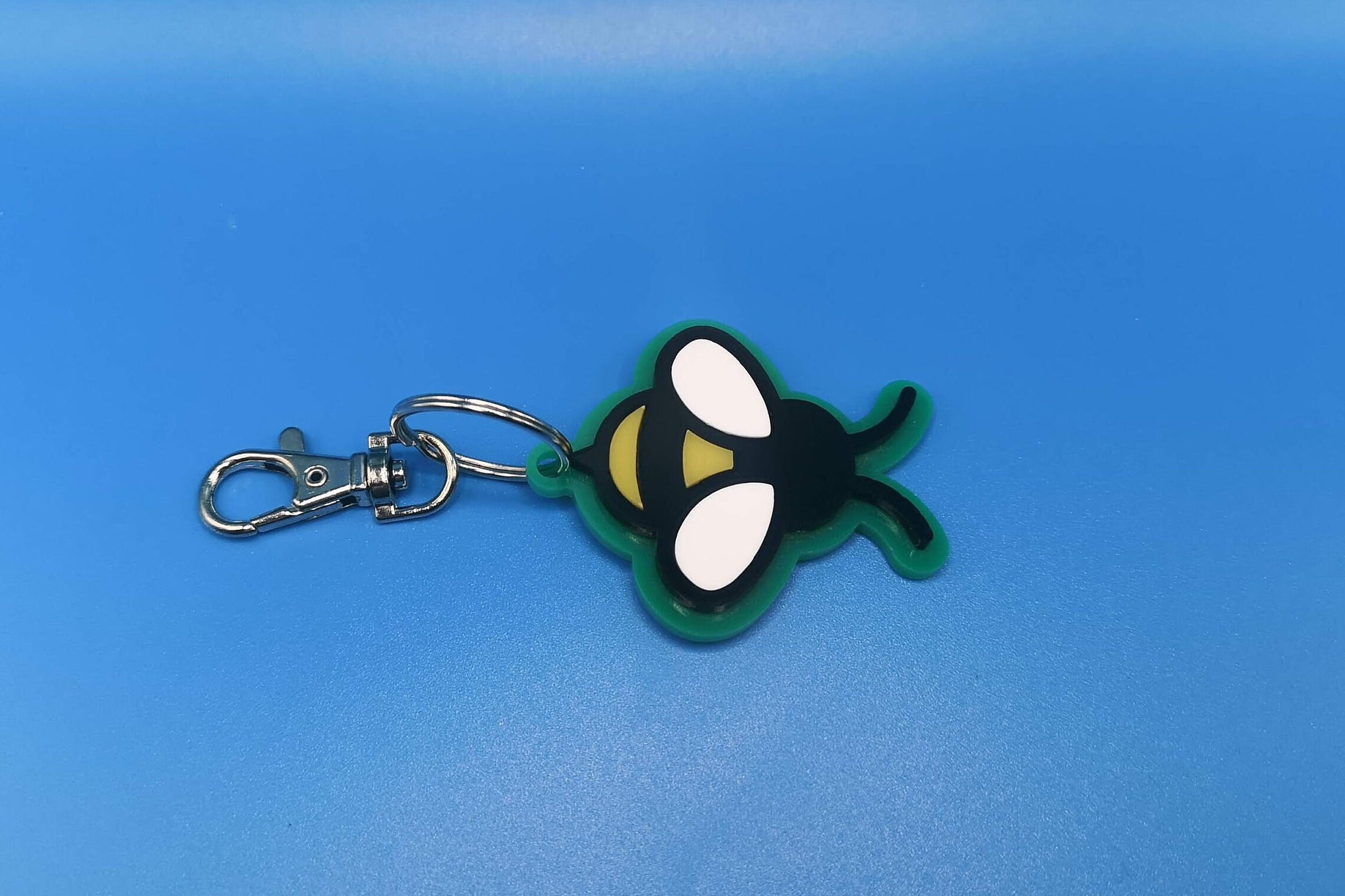 Each key chain is made with using 4 different coloured acrylics. Black, White, Yellow and the background colour of your choice. The acrylic layers are fused together so they won't come apart.