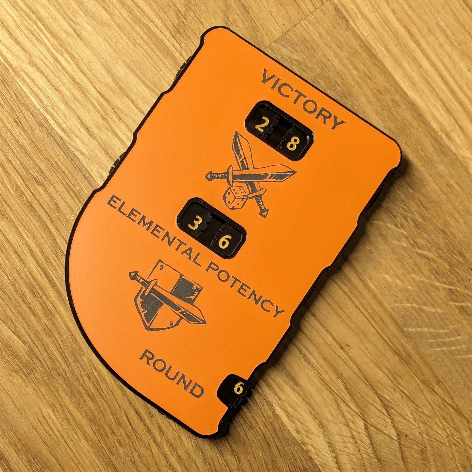 This Conquest Game Tracker is the ideal addition to your Dwegholm army. Making it easy to keep track of how much you're winning by, along with the round your k and your Elemental Potency.
