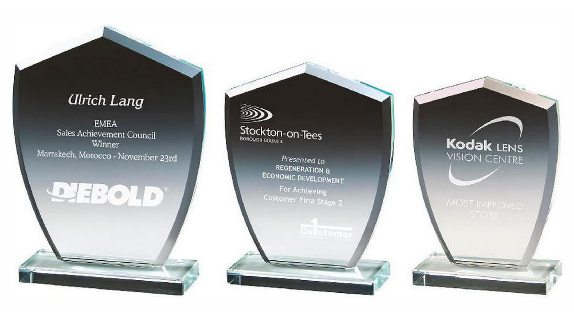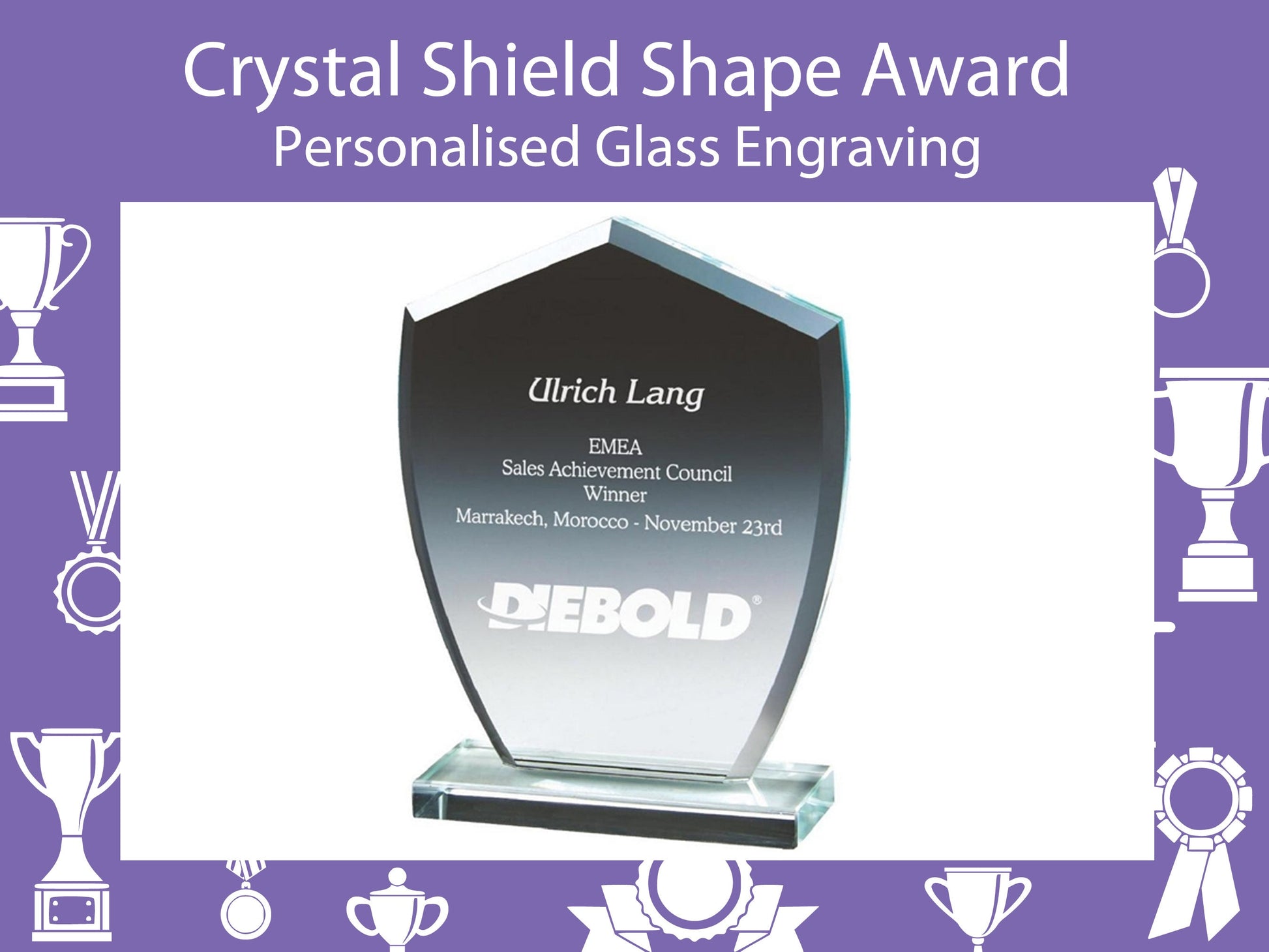 Crystal Shield Shaped Award with Personalised Laser Engraving