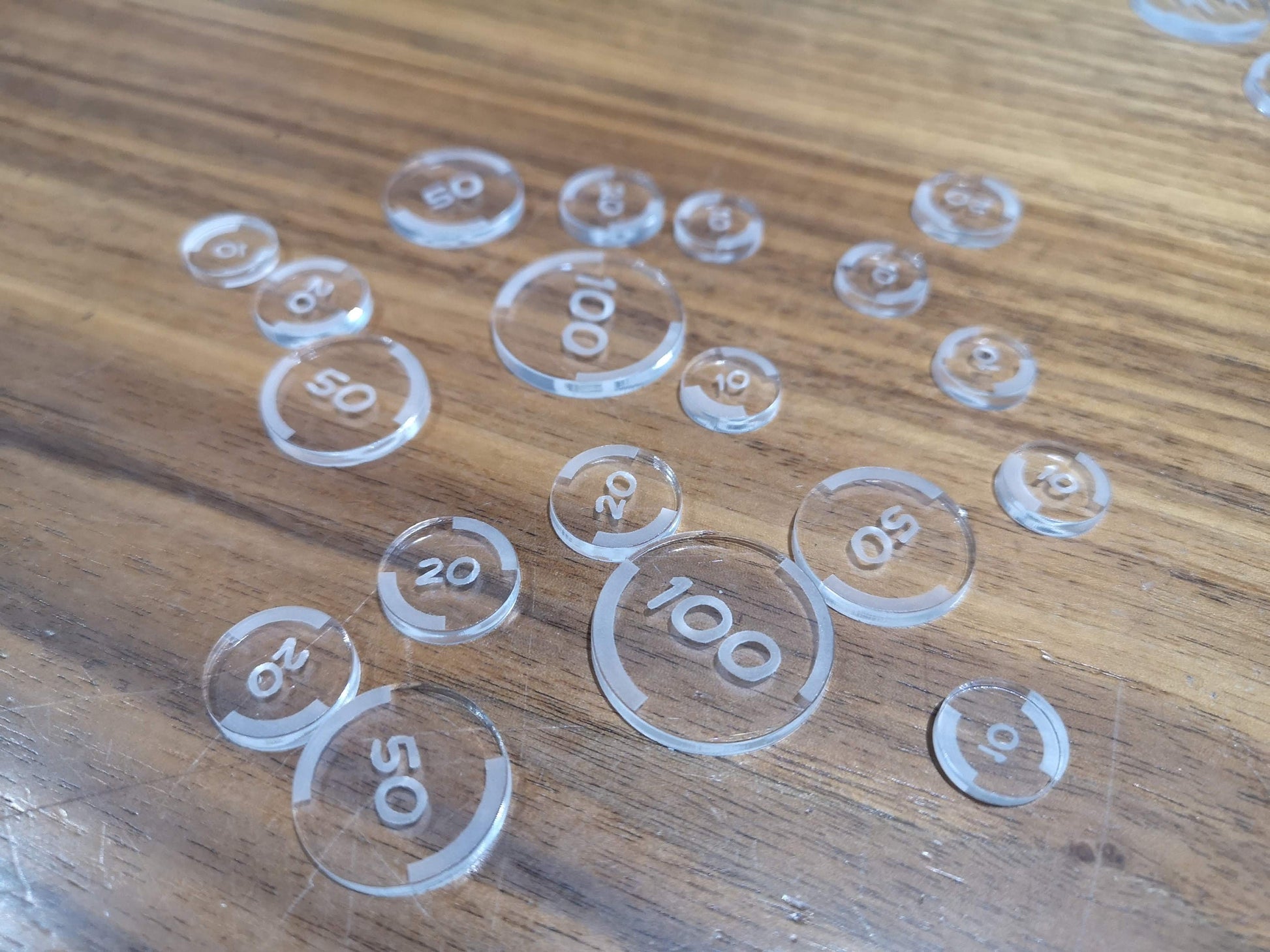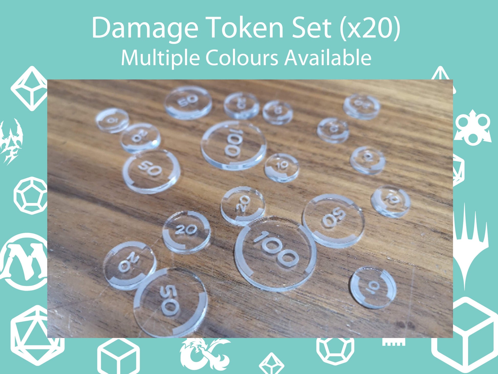 Damage Tokens Set (x20). Acrylic Tokens in a variety of Colours.