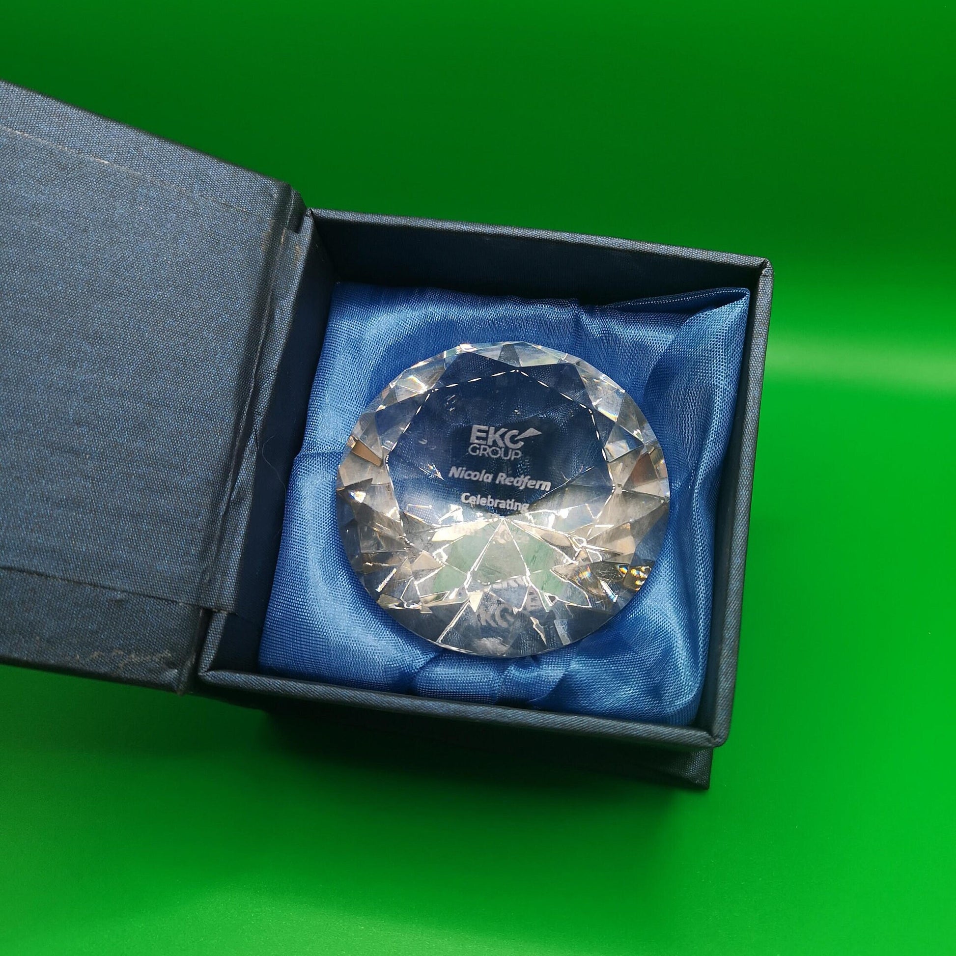 Diamond Paperweight with Custom Laser Engraving. Ideal for Anniversaries, Achievements and Presentations