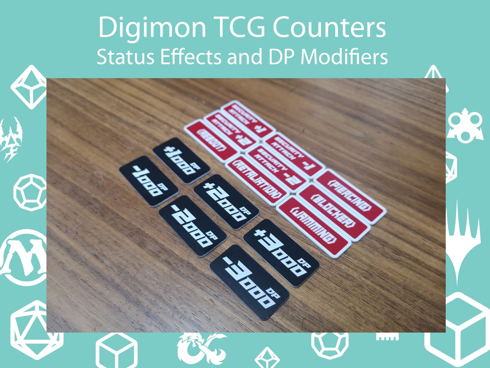 Digimon TCG - Status Effects and DP Modifier Tokens. Ability Counters. 2 Colour Acrylic tokens