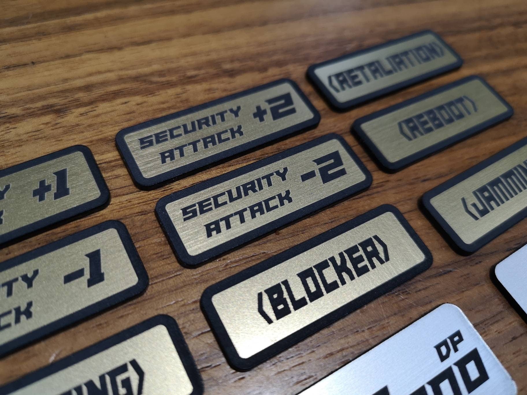The Digimon Counters are made from a 2 layer acrylic. The top is then engraved taking the coloured layer away for the white layer to be seen.