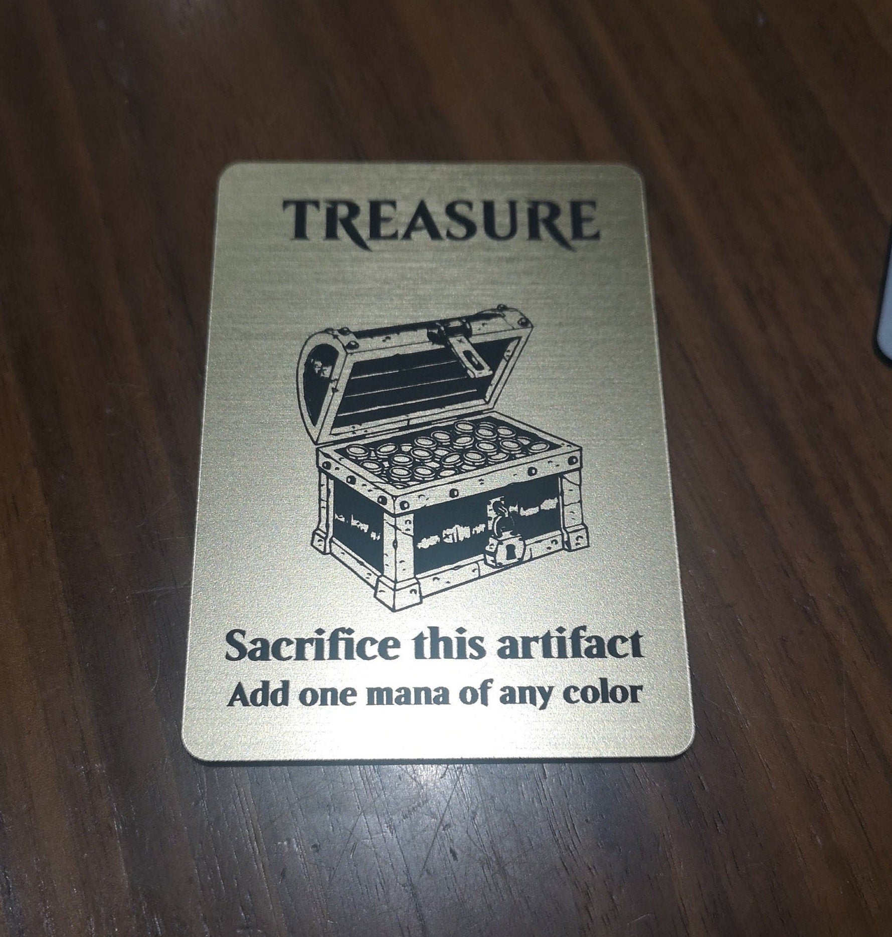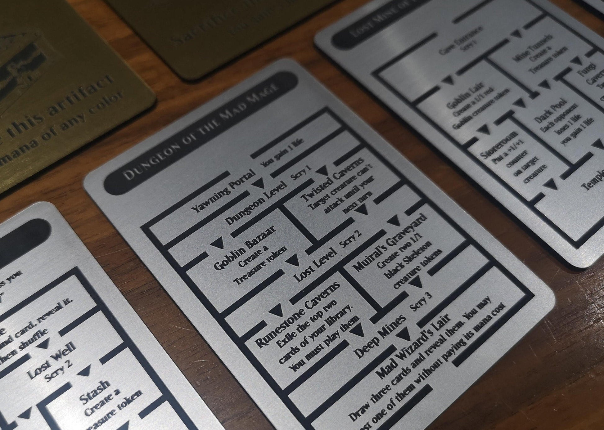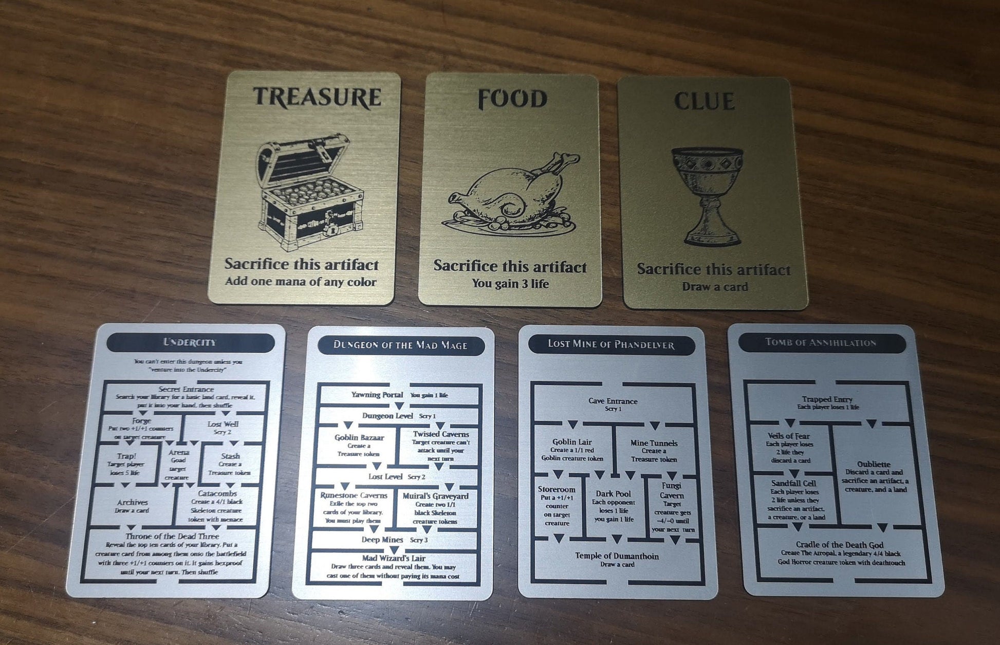 Magic the Gathering Dungeon Tokens - 4 Dungeons and 3 Treasure Counters - Gold and Silver 2 ply Acrylic
