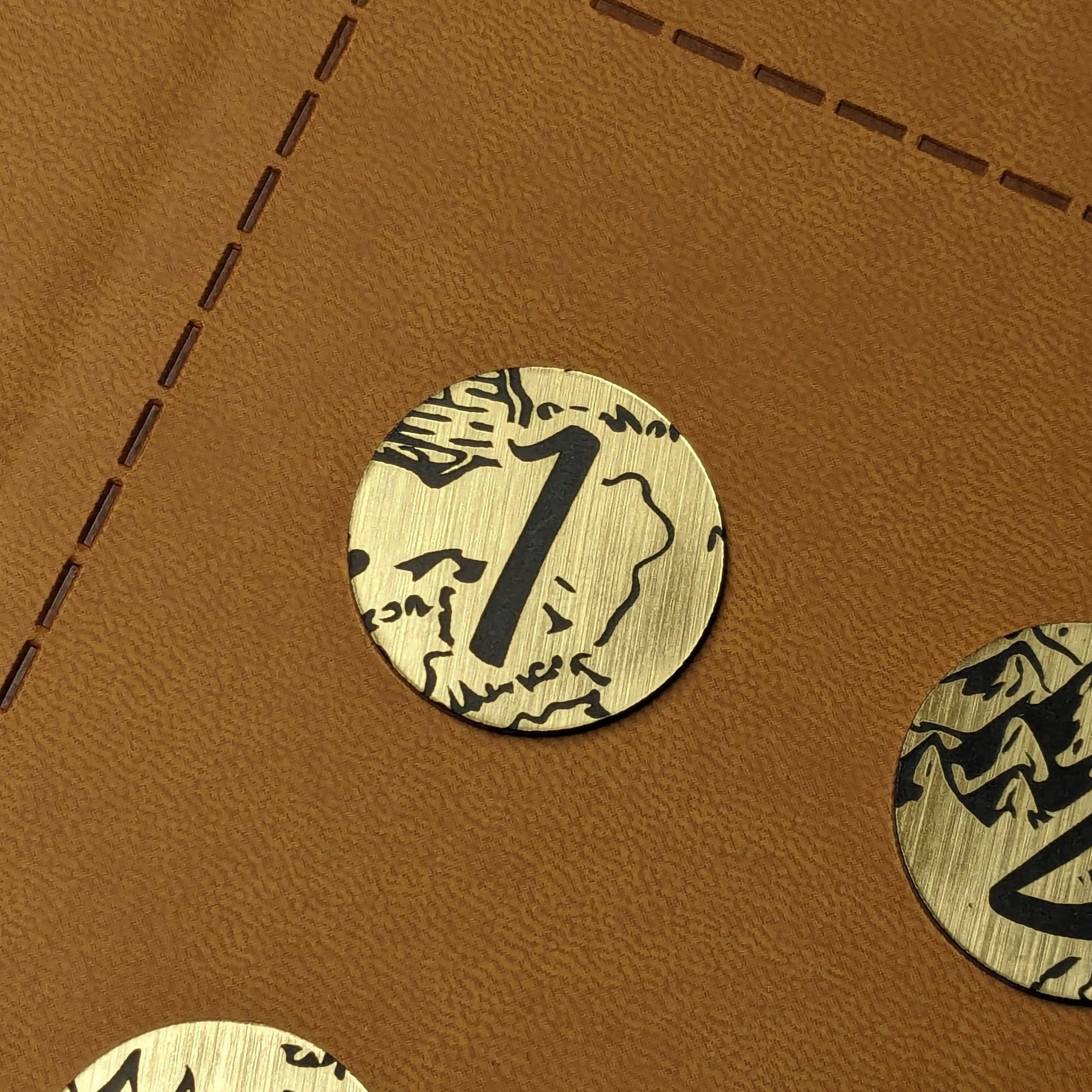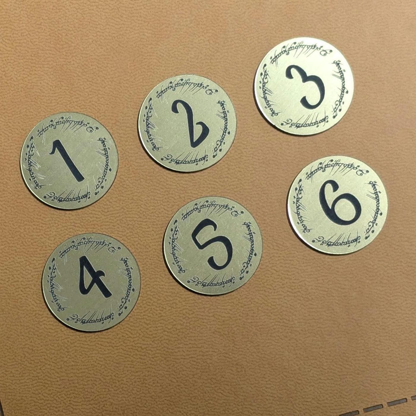 Each token is made from a 2 colour acrylic with the Lord of the Rings map aspect designs or the wording from the One Ring engraved into the top layer.