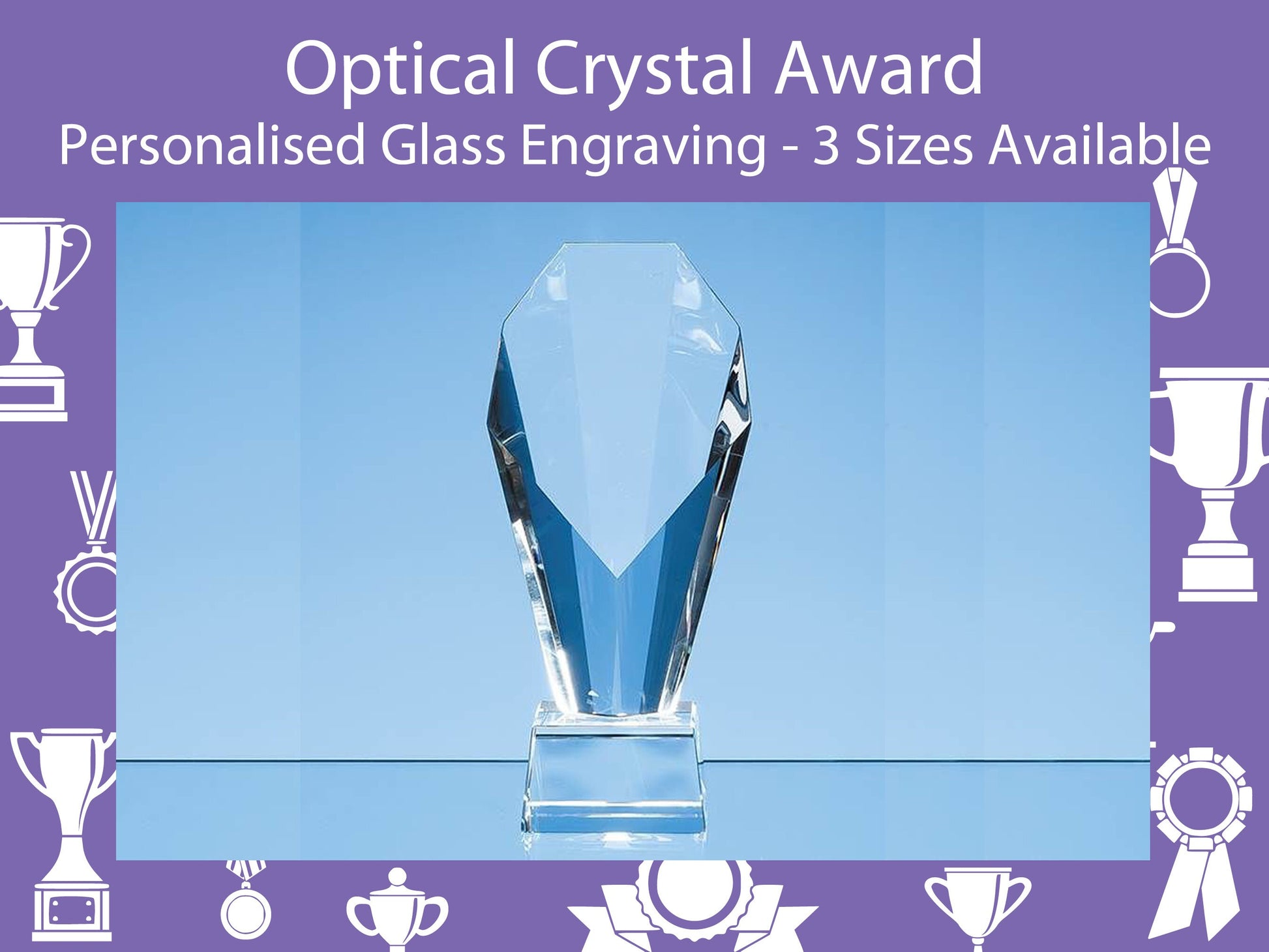 Diamonds are forever. This sparkling optical crystal mounted diamond shaped award shows the flawless finish of optical crystal at its best.