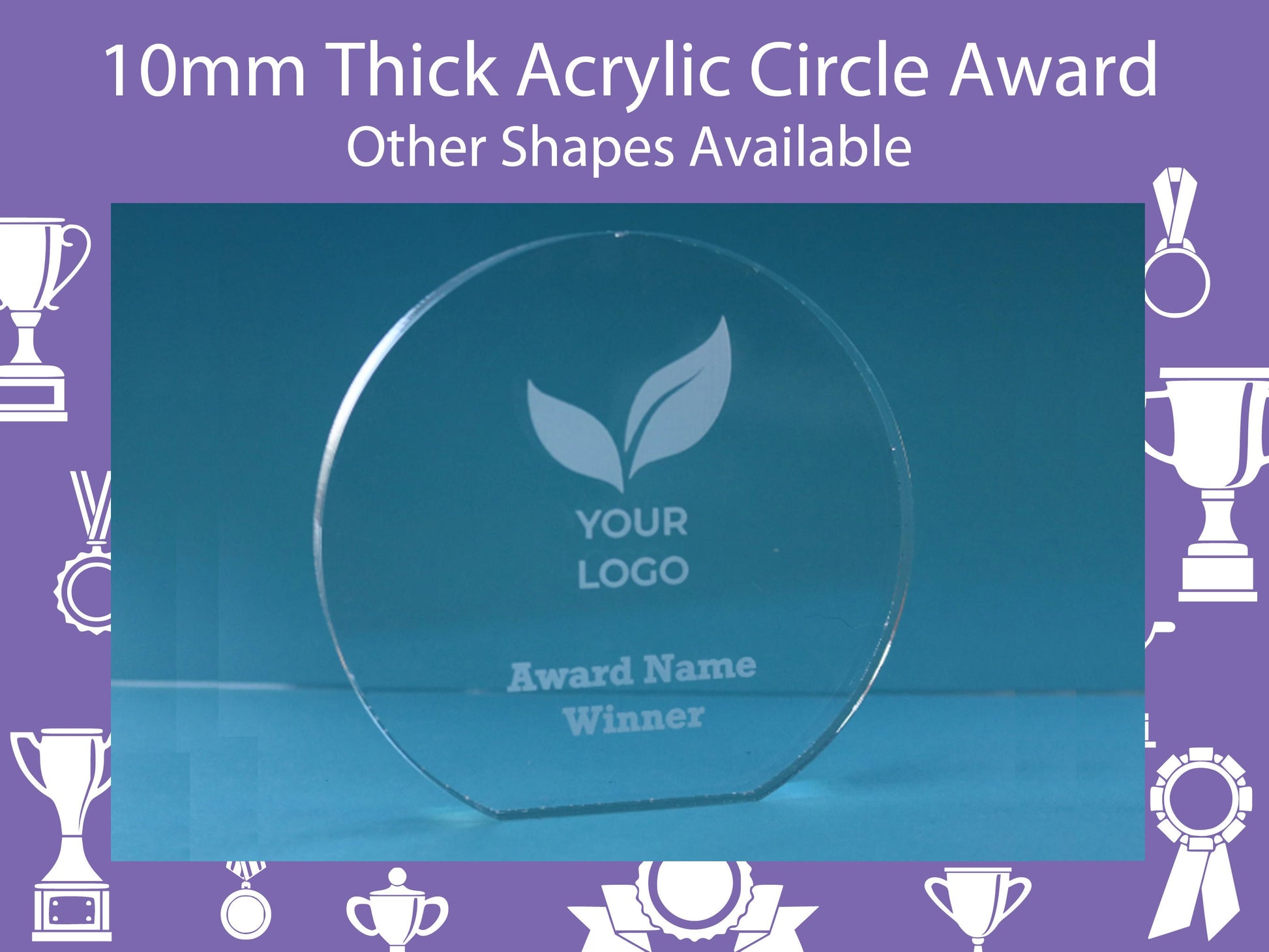These 10mm thick acrylic awards are cut and engraved to order. With a proof provided to make sure you're 100% happy with the design before it gets made.