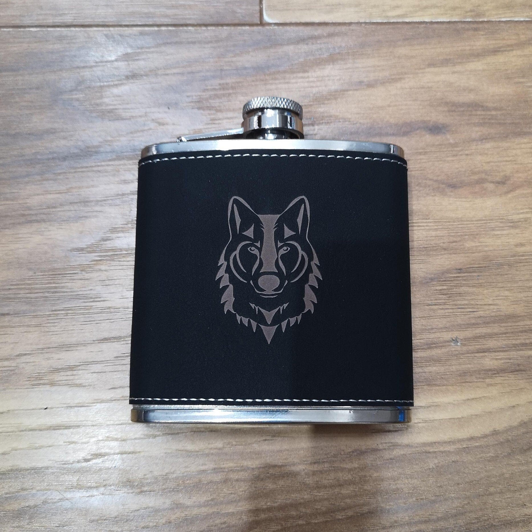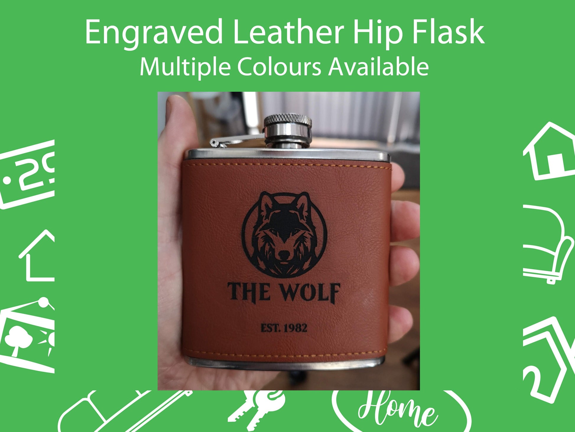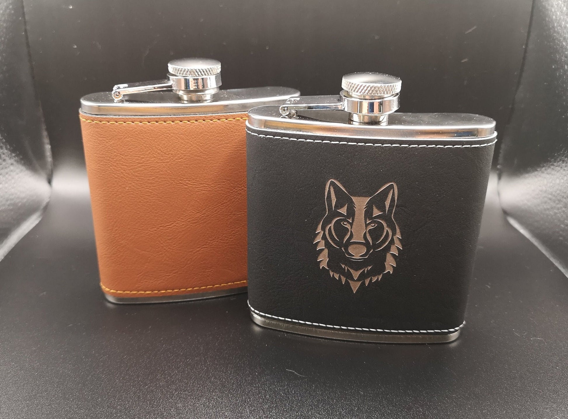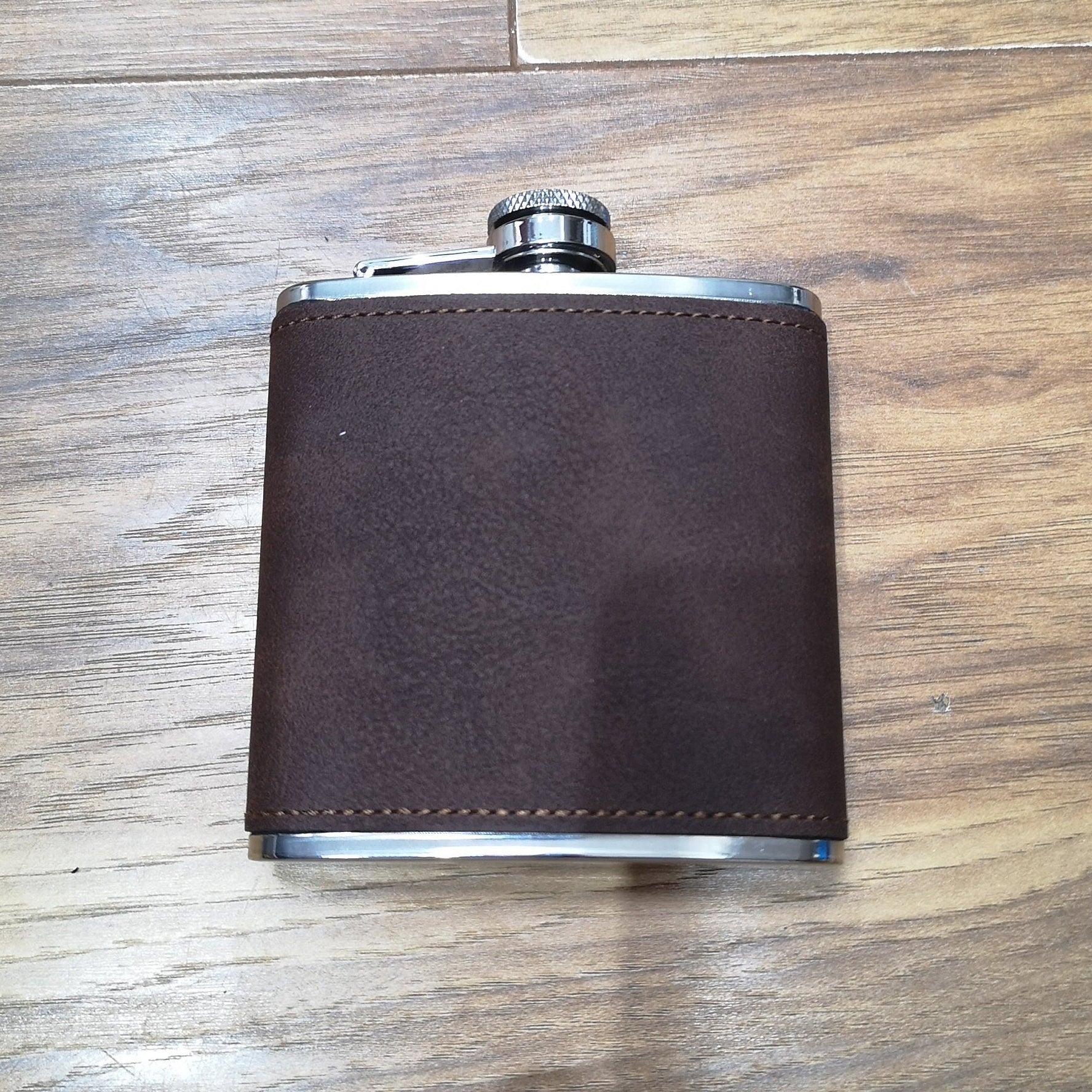 Personalised Engraved Leather 6oz Hip Flask - Multiple Colours Available