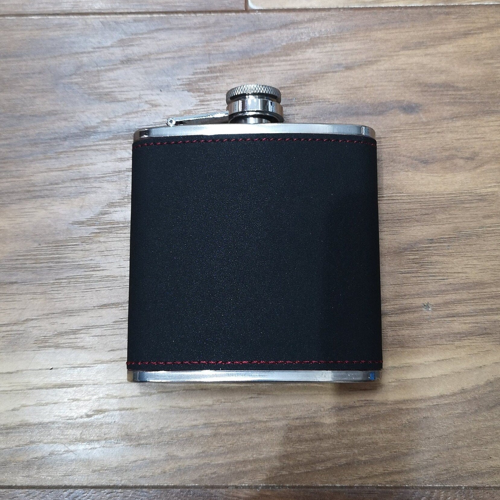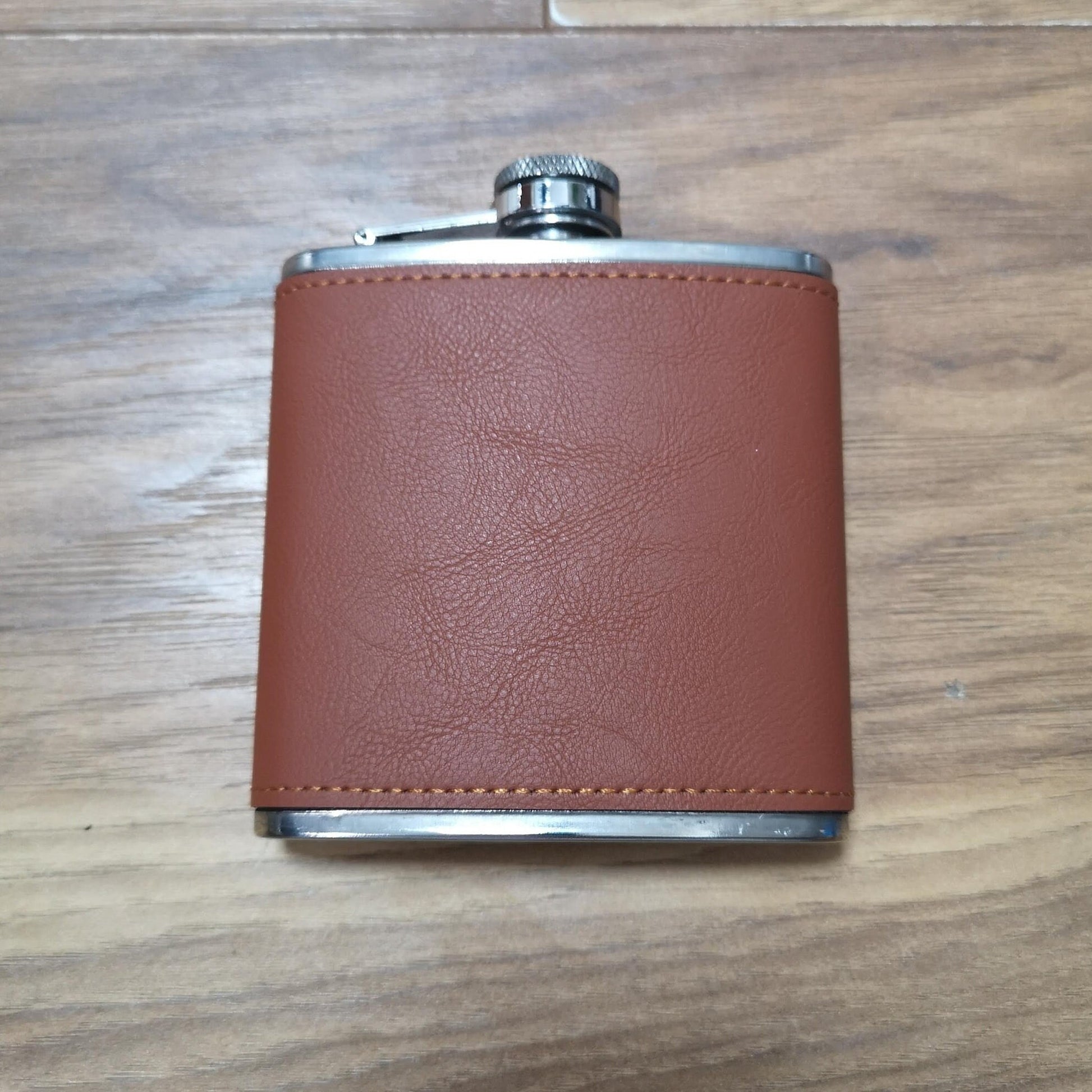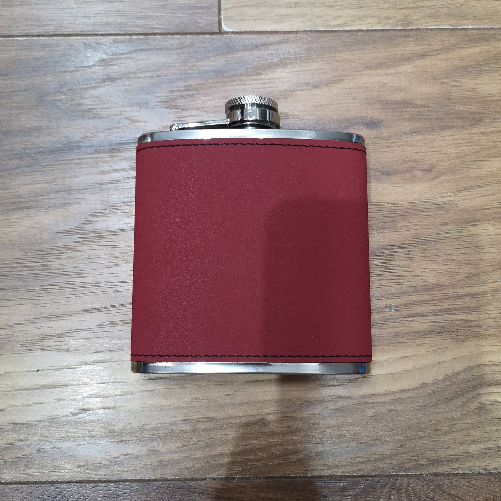 These stunning hip flask are available in black, brown, tan, black (with red stitching) or red PU leather and engraved with the name, details and/or logo of your choice. All flasks are made from stainless steel and PU leather.