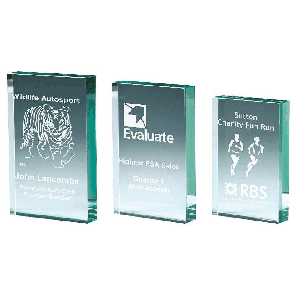 Premium Jade Glass Block Award - with Presentation Case - Personalisable Engraving - Available in 3 Sizes