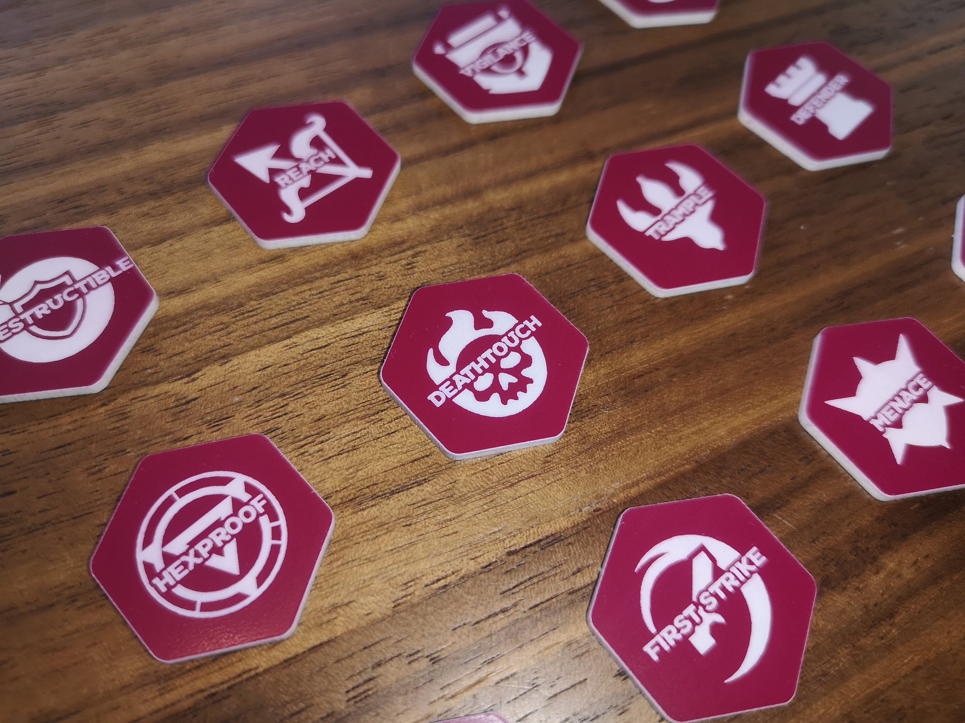 This listing is for a set of 12 laser engraved acrylic Magic the Gathering Keyword tokens. These MtG tokens are the ideal accessory for players, giving a visual aid for keeping track of card abilities. Useful for many variants of Magic the Gathering, such as Baldurs Gate, Commander or Streets of New Capenna.