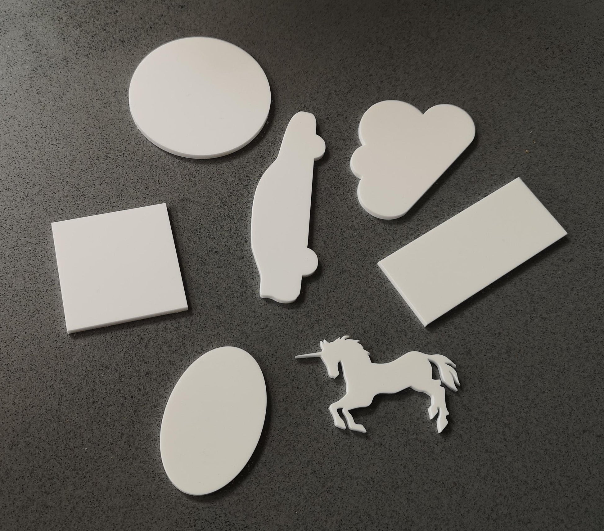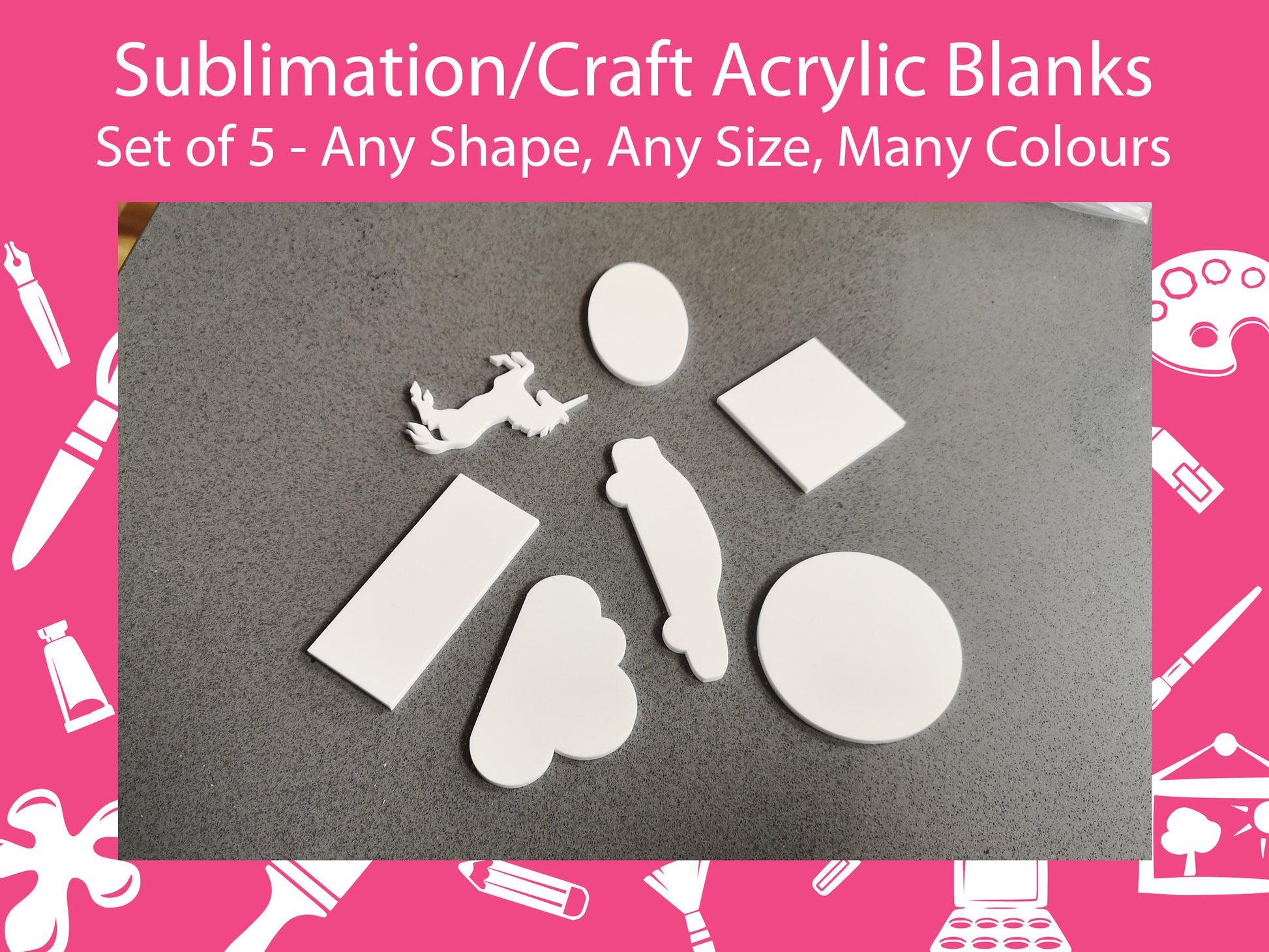 Set of 5, Acrylic Sublimation Blanks - 3mm Thick - Any Shape, Many Sizes, Multiple Colours
