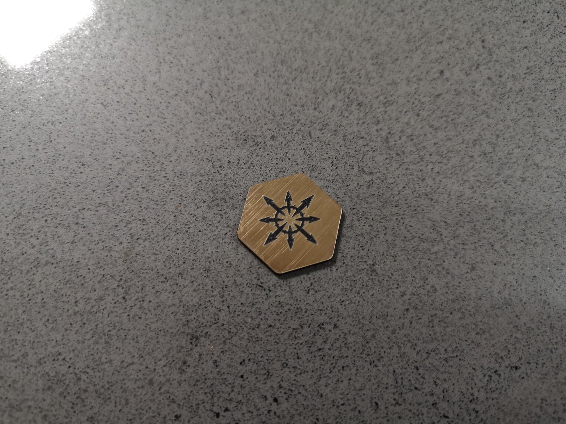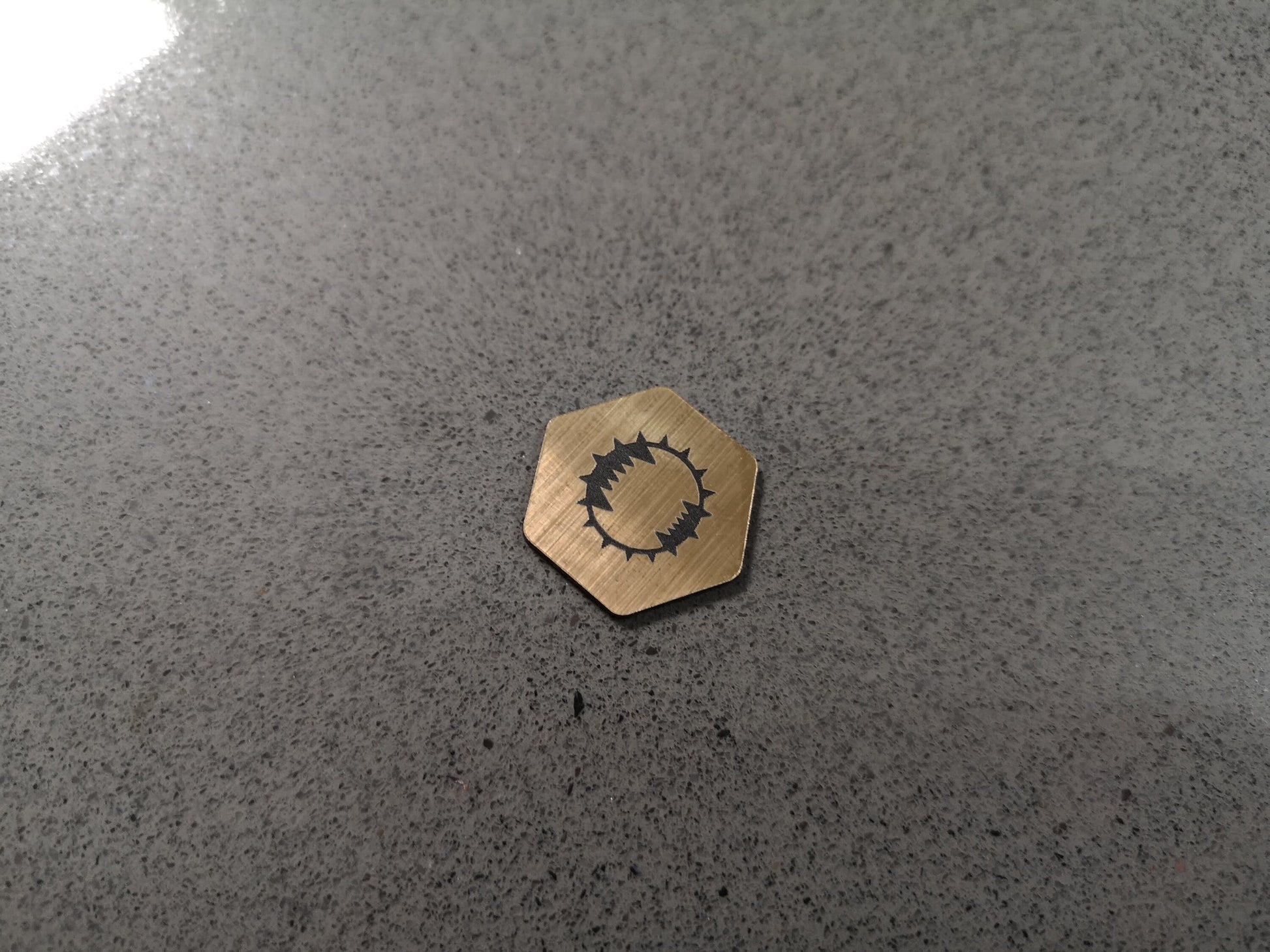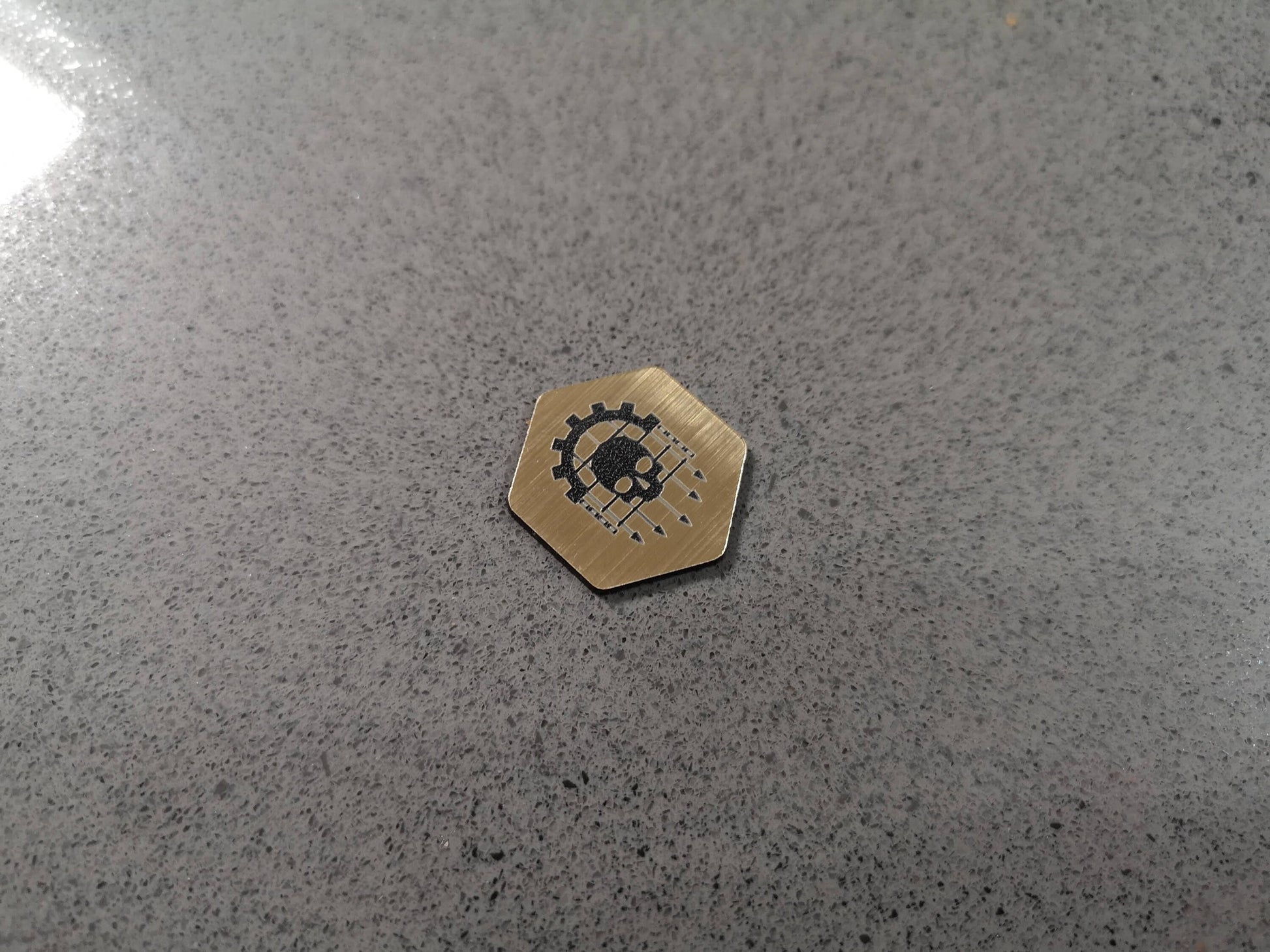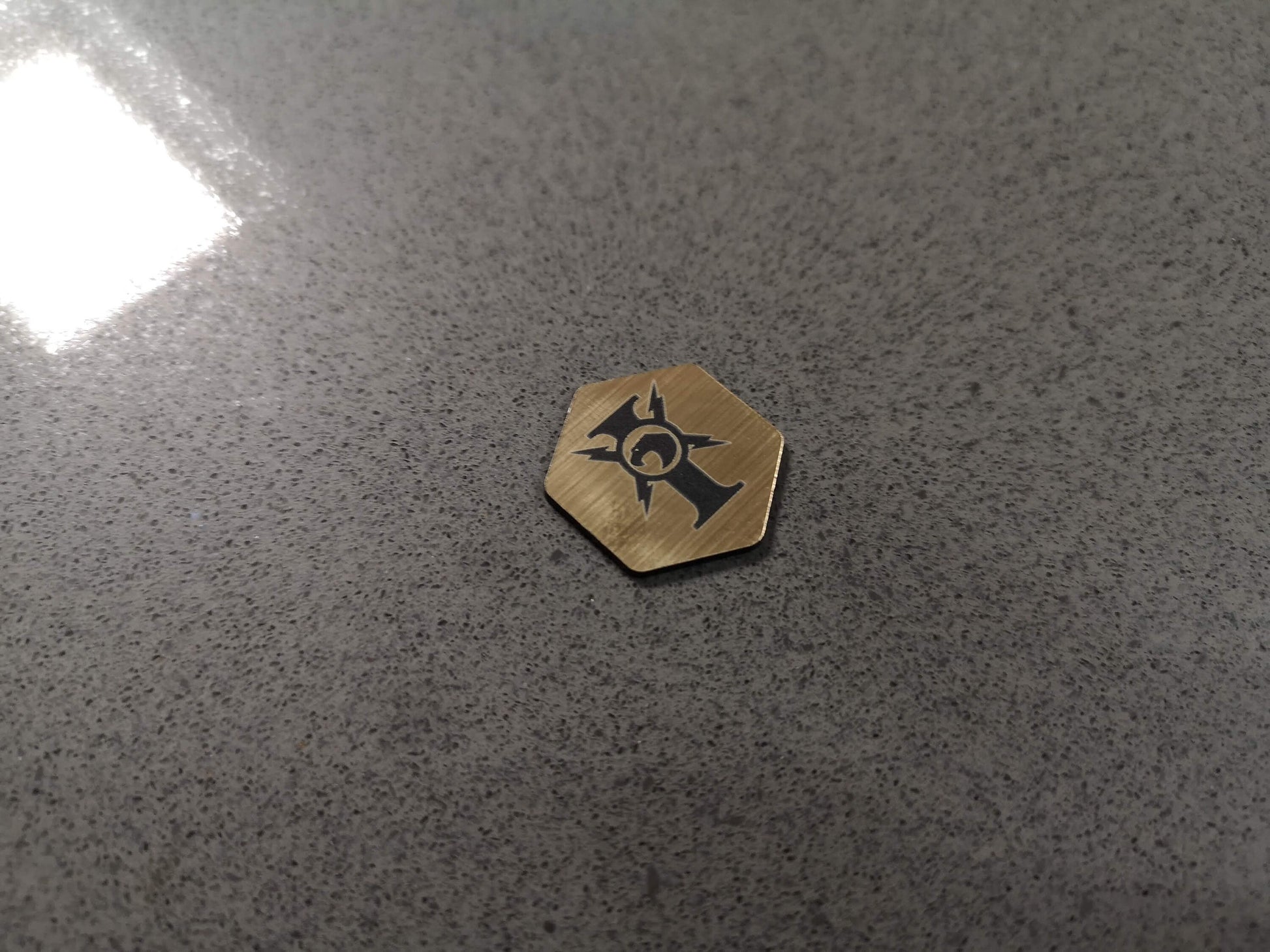 Each token is made from a 2 colour acrylic with the designs engraved into the top layer.
