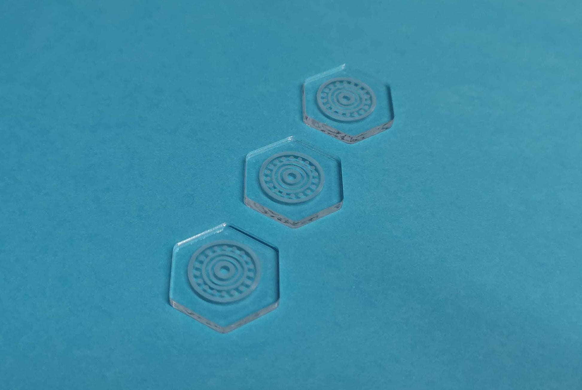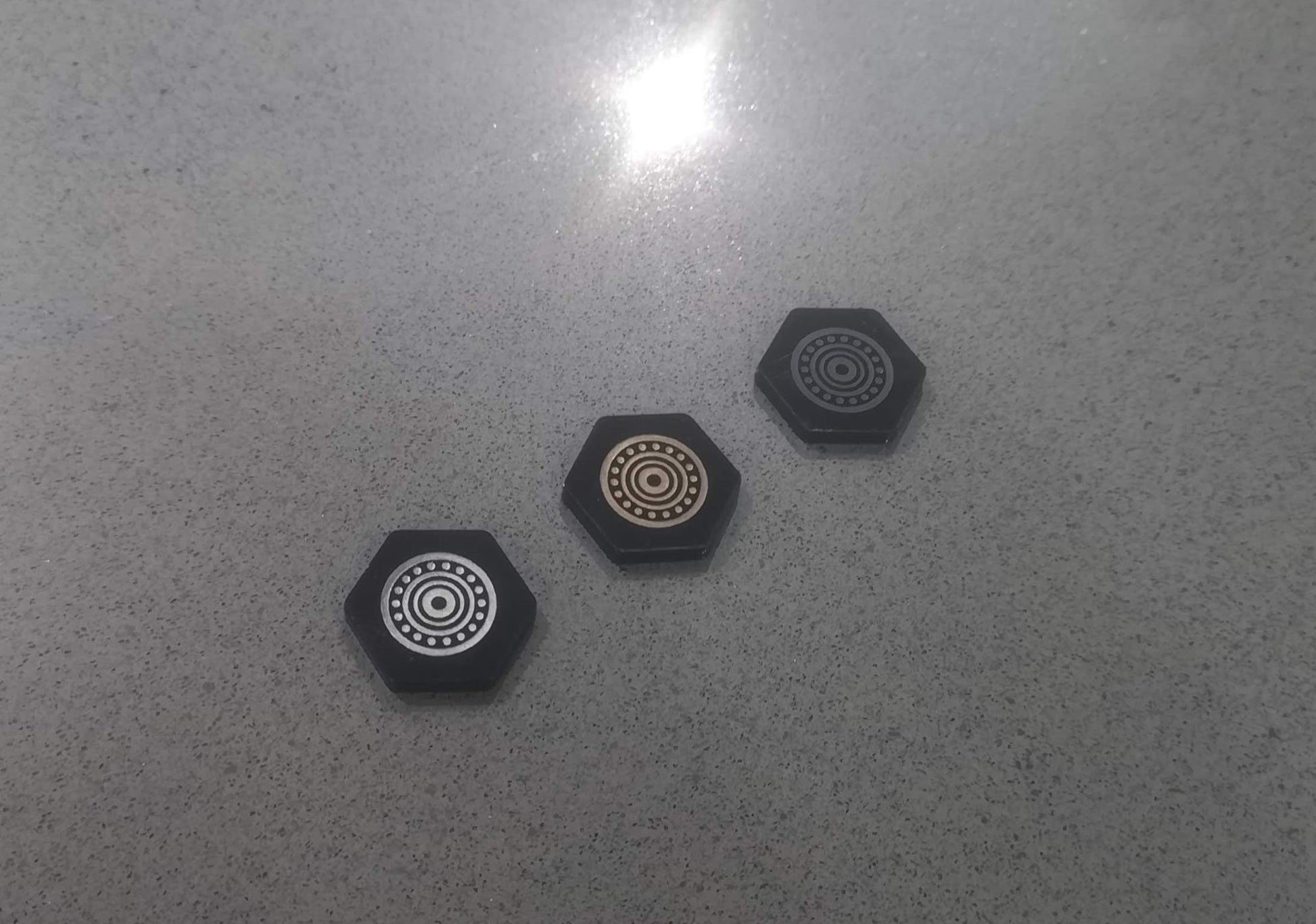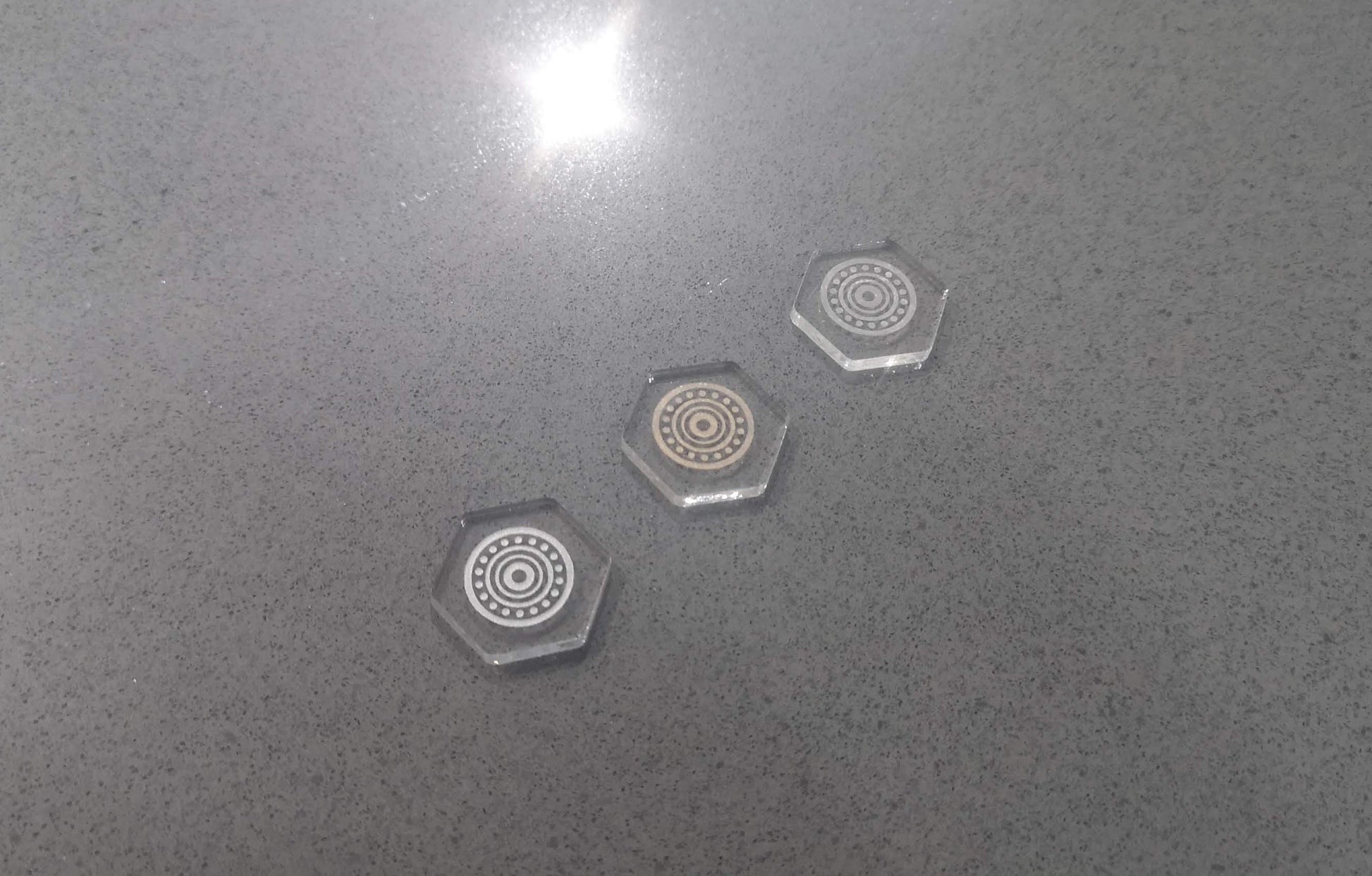 Each token is made from your choice of acrylic colour, with the option to add infill to the engraved areas.