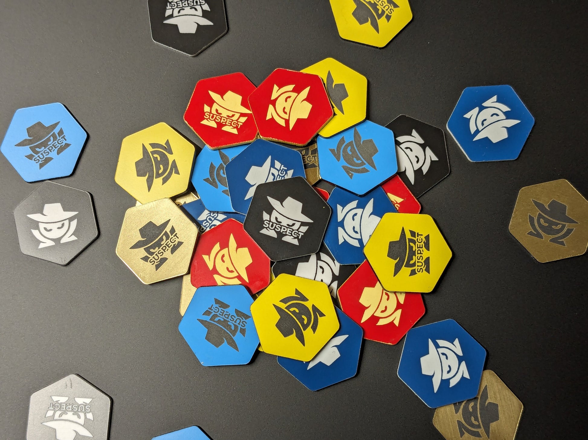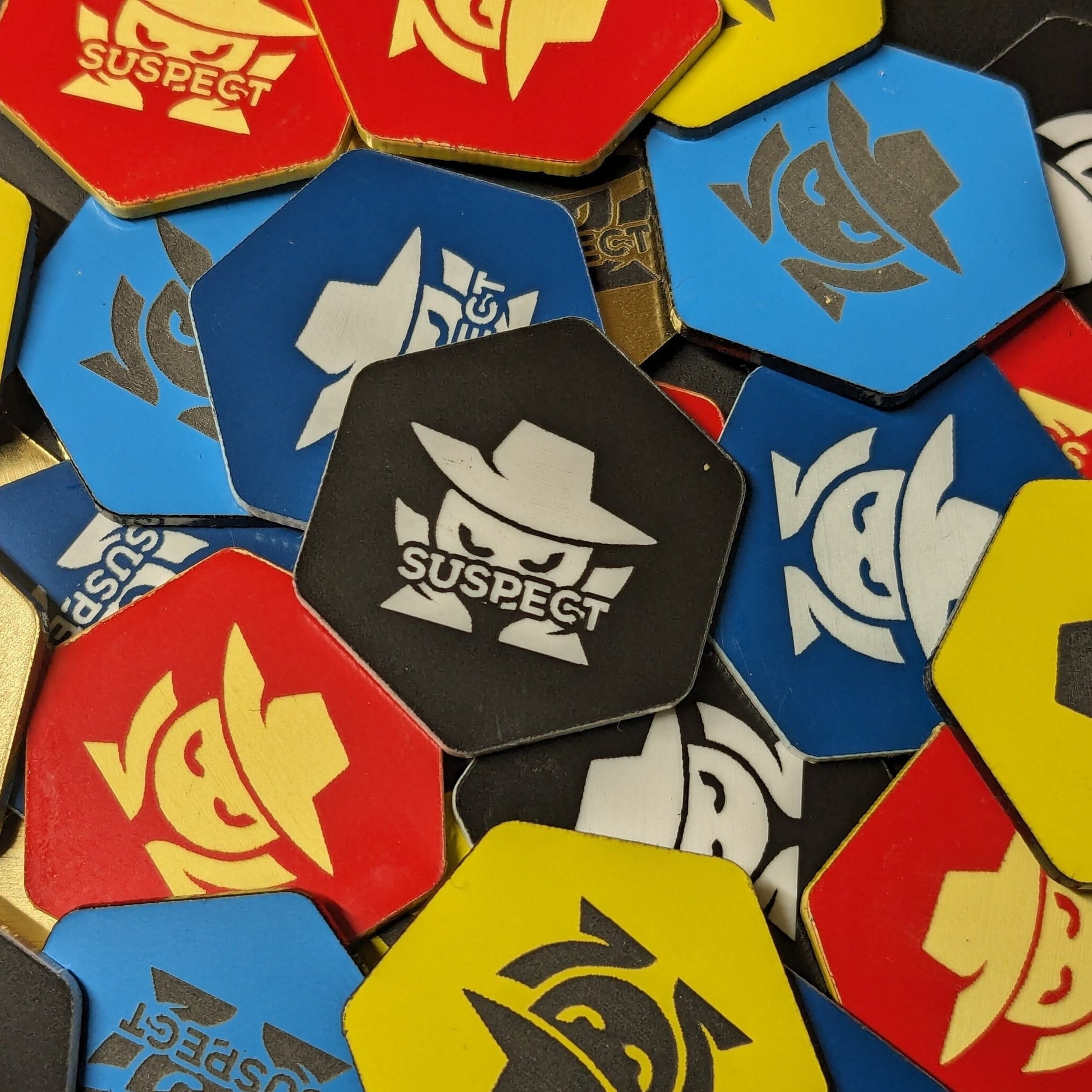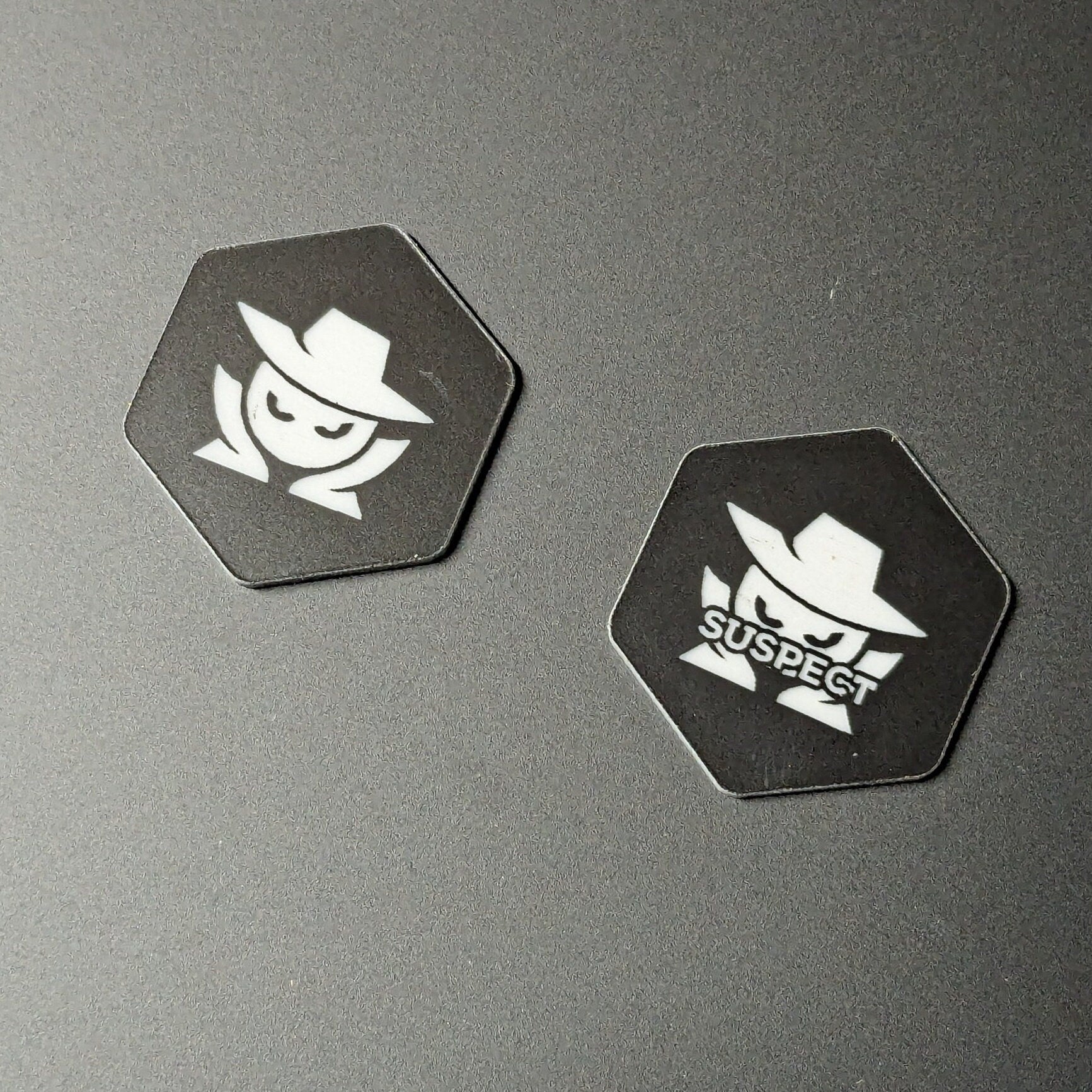 This listing is for the Suspect Keyword laser engraved acrylic Magic the Gathering tokens. These are the ideal accessory for MtG players, giving a visual aid for keeping track of card abilities and keywords.