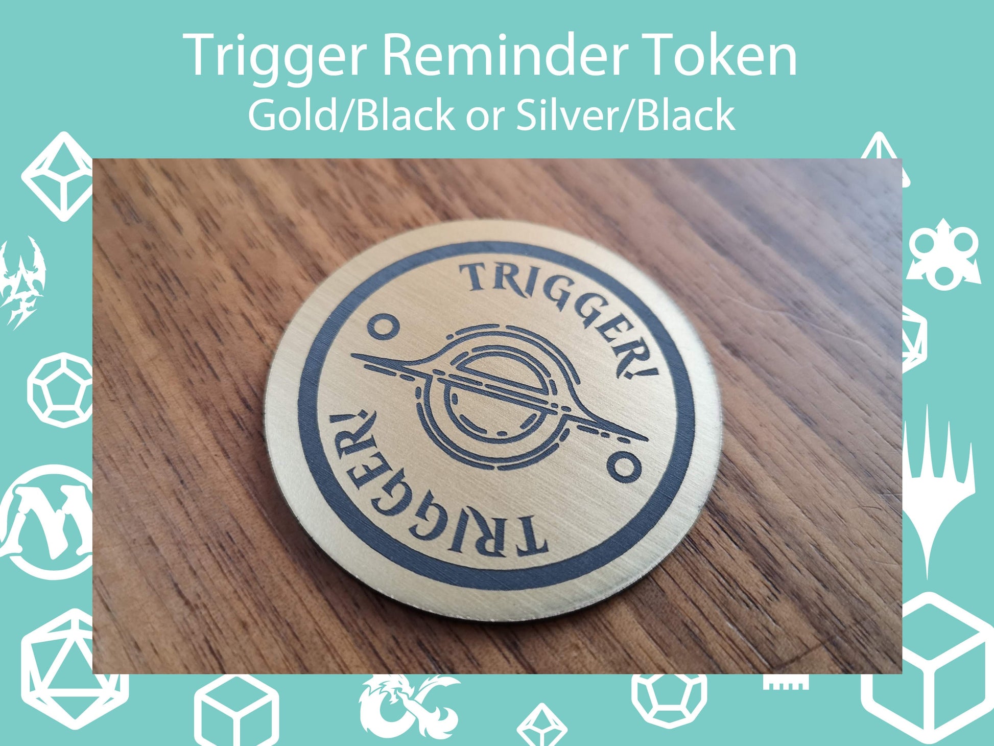 These Trigger Reminder tokens are ideal for Trading Card Games such as Magic the Gathering. No longer will you forget your Triggers with these on your cards. Each token has a 50mm, 2 inch(ish), diameter to make sure it is nice and visible on your card.