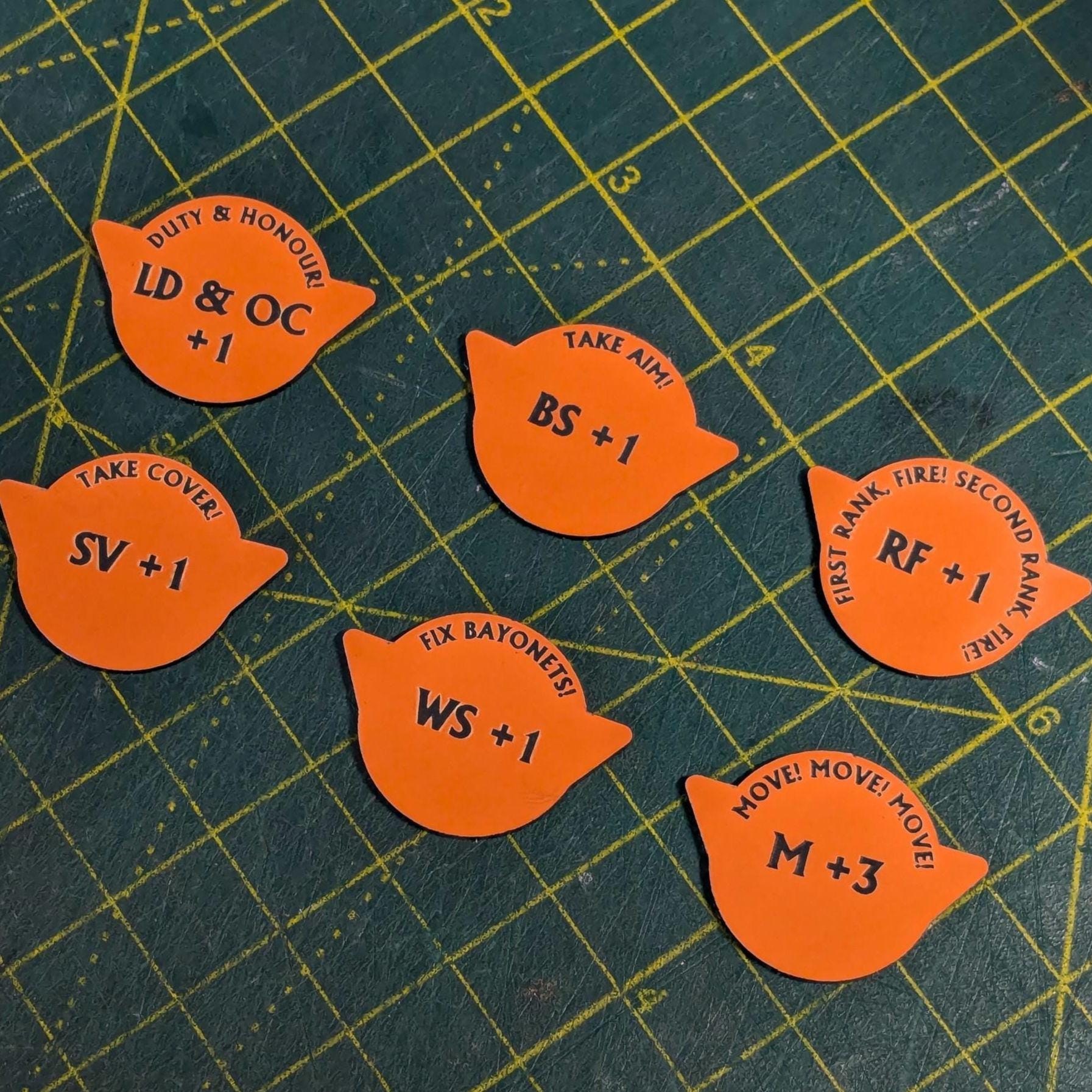 These Voice of Command tokens are ideal for WH40K 10th Edition. The WH40K tokens are an ideal way to keep track of which Enhancements you're giving each of your units.