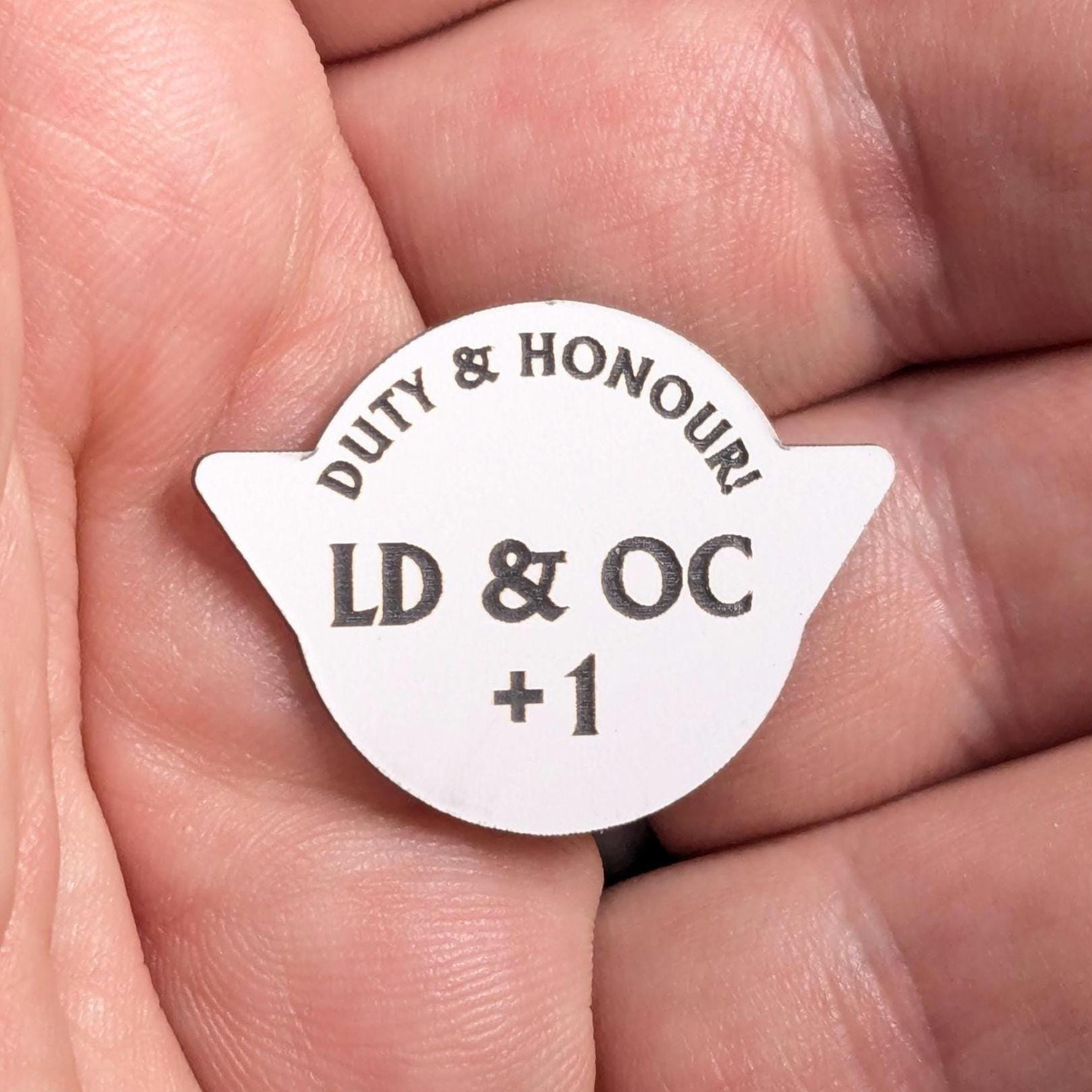 Each Voice of Command marker is made from 1.5mm thick 2 Ply acrylic, is 34mm wide and 25mm high.